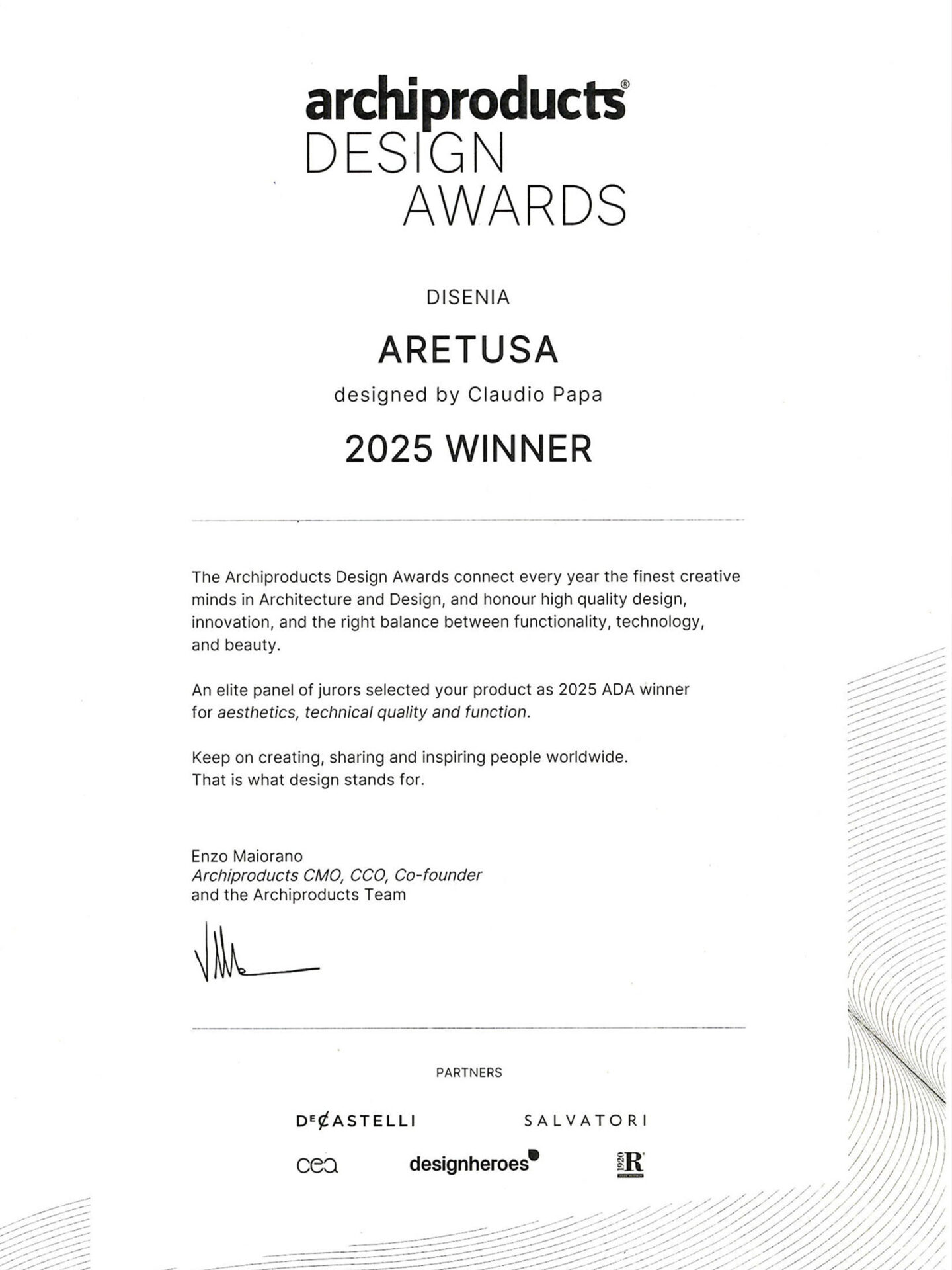 10/11/2025 Aretusa ha sido seleccionada en los Archiproducts Design Awards 2025 La bañera wellness Aretusa, diseñada por Claudio Papa, ha sido seleccionada en los Archiproducts Design Awards 2025: el premio que celebra la excelencia del diseño internacional y recompensa a las empresas y diseñadores que han sabido trabajar juntos para dar forma a soluciones en equilibrio entre estética, funcionalidad e innovación. Cada año, el jurado del ADA, compuesto por los mejores arquitectos, diseñadores y directores creativos del diseño internacional, selecciona los proyectos más innovadores entre más de 700 candidatos a los premios. Lee todas las noticias