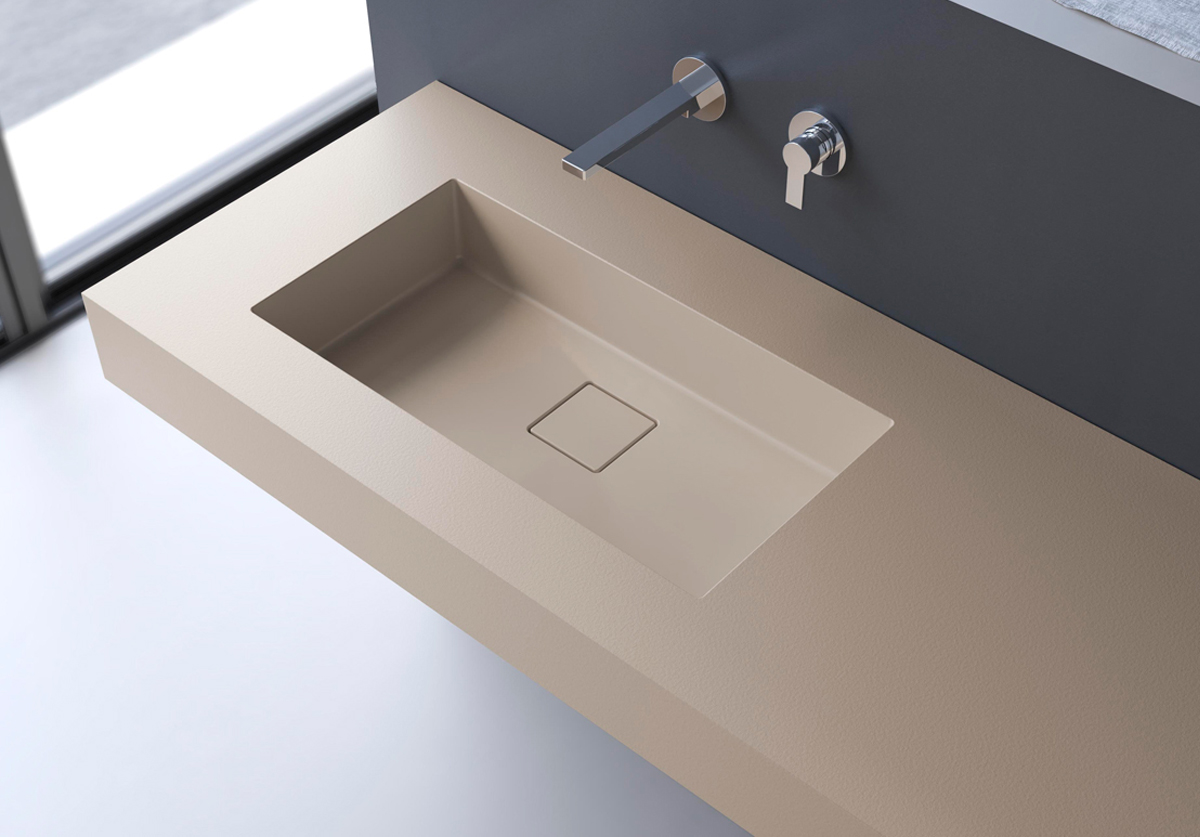 Es un material con efecto mate compuesto de cargas minerales naturales (carbonatos de calcio y trihidratos de aluminio) y resinas de poliéster recubiertas de gelcoat. El gelcoat es una sustancia a base de resina de poliéster-acrilato que impermeabiliza el compuesto y garantiza su resistencia al agua y a los agentes agresivos.