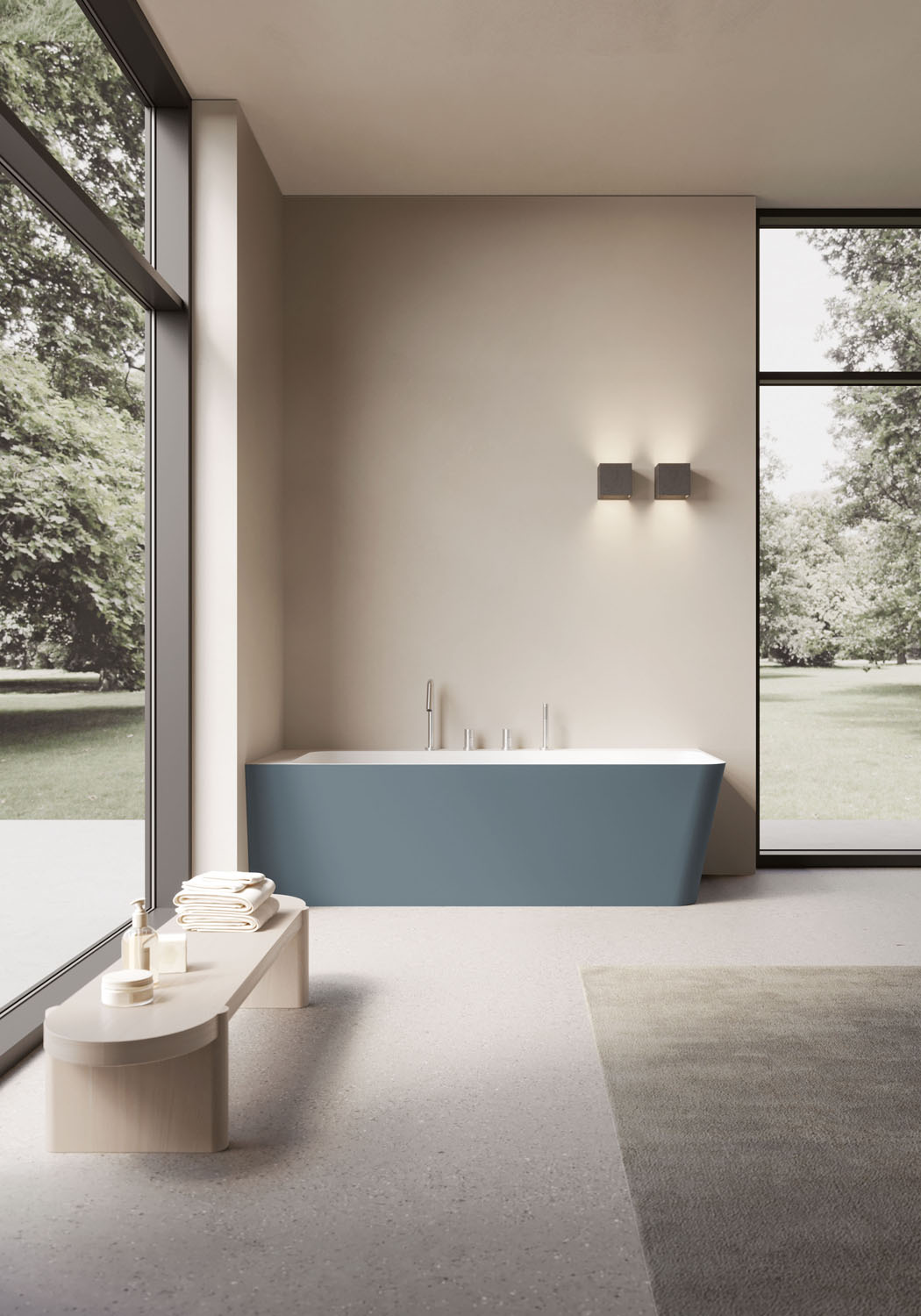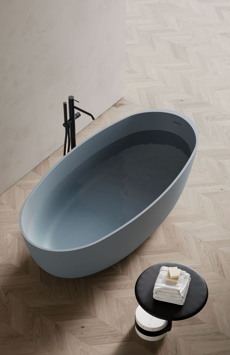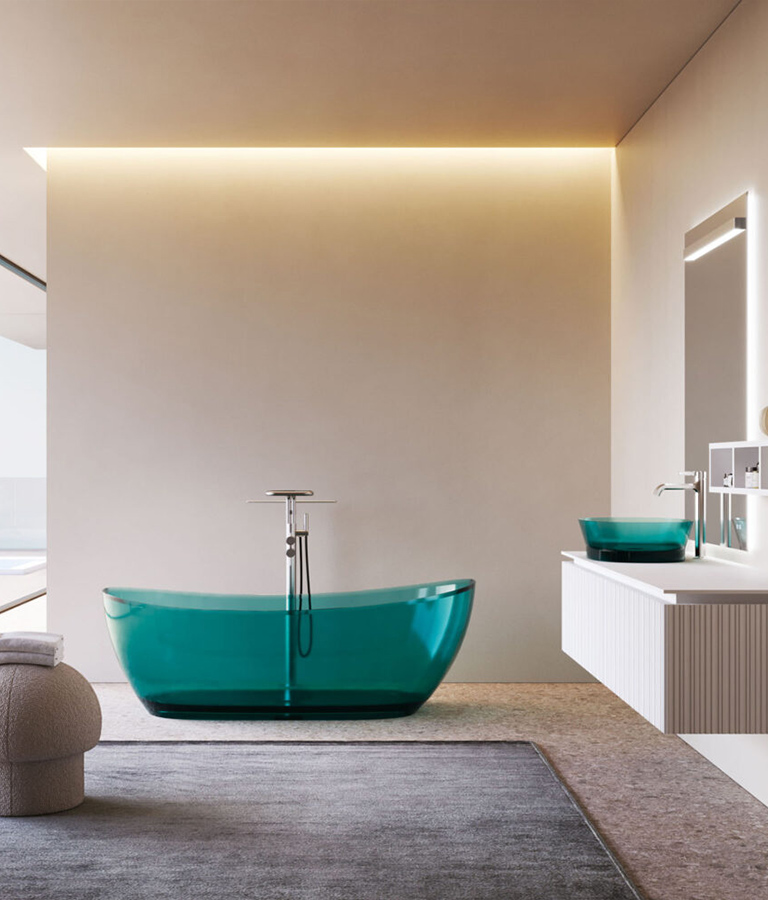 Aquagel es un compuesto de cargas minerales naturales y resinas poliméricas, recubierto de una película de resina que confiere al producto una impermeabilidad absoluta, una excelente resistencia a los agentes químicos y una sensación táctil muy similar a la de los productos cerámicos, pero con mayores prestaciones y posibilidades estéticas. Además, este material tiene propiedades antibacterianas, ignífugas y es autoextinguible.
