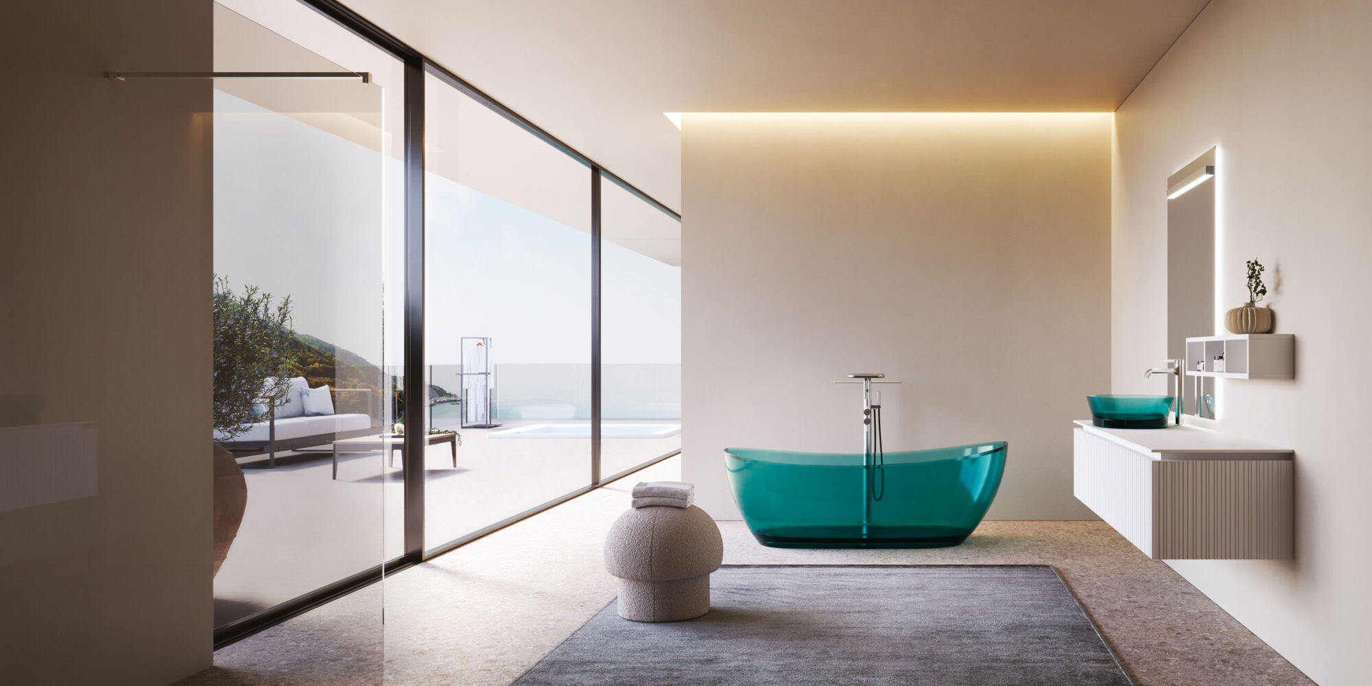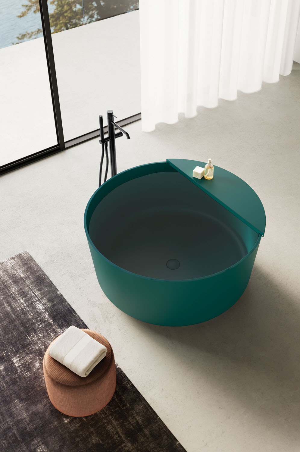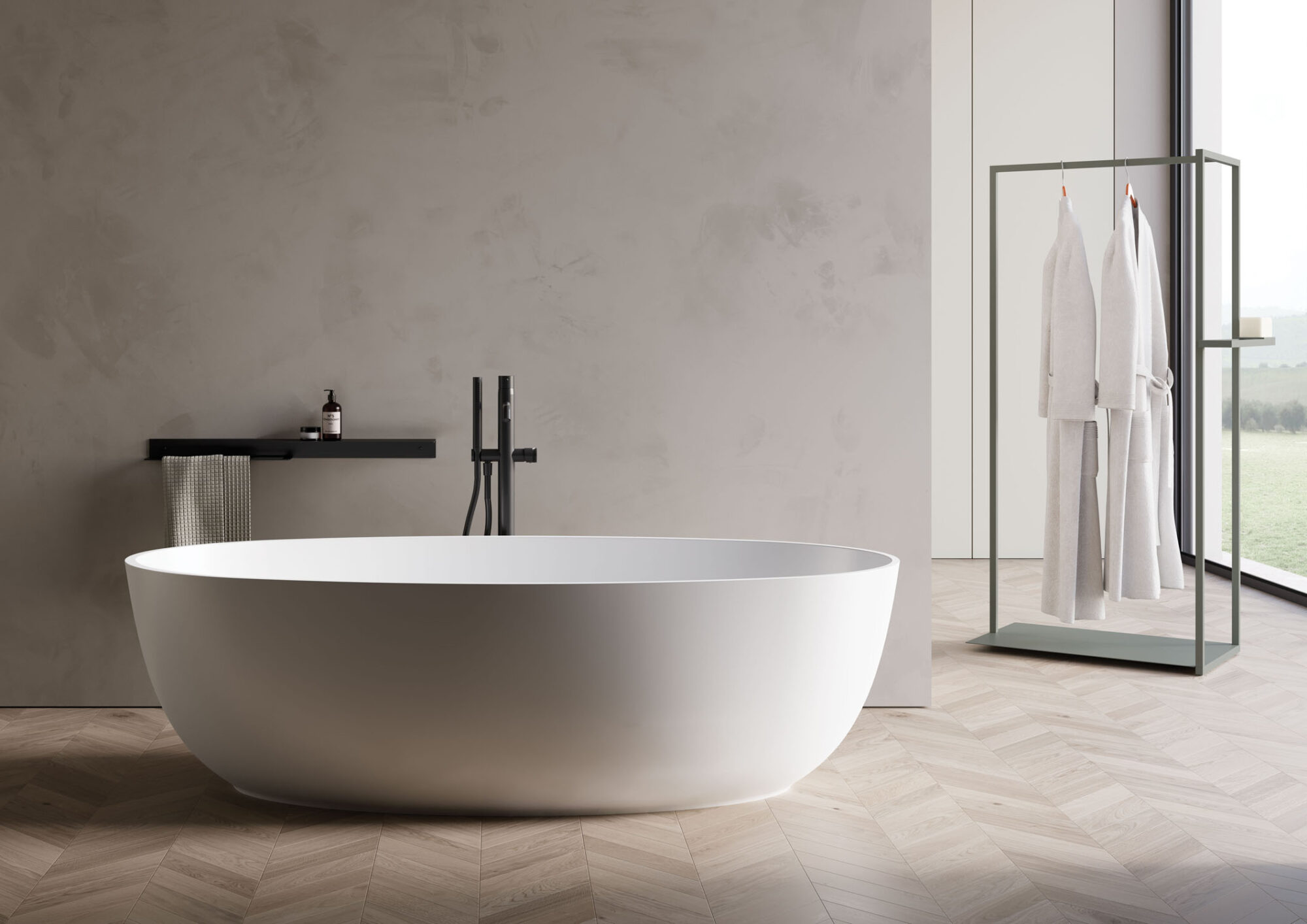 Aquagel es un compuesto de cargas minerales naturales y resinas poliméricas, recubierto de una película de resina que confiere al producto una impermeabilidad absoluta, una excelente resistencia a los agentes químicos y una sensación táctil muy similar a la de los productos cerámicos, pero con mayores prestaciones y posibilidades estéticas. Además, este material tiene propiedades antibacterianas, ignífugas y es autoextinguible.