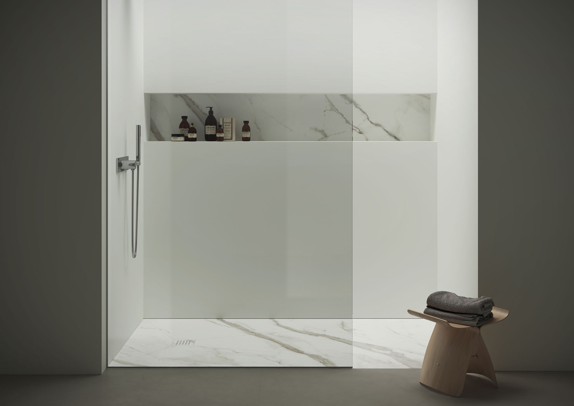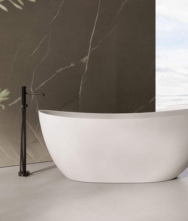 Laminam es una mezcla de arcillas, feldespatos y sílices. Tiene una gran resistencia a las tensiones mecánicos, ataques químicos, arañazos y abrasiones. La limpieza es muy fácil y, aun si realizada con frecuencia, no altera su superficie. La superficie garantiza la máxima higiene, ya que no permite la proliferación de bacterias, mohos u hongos en el cuarto de baño.