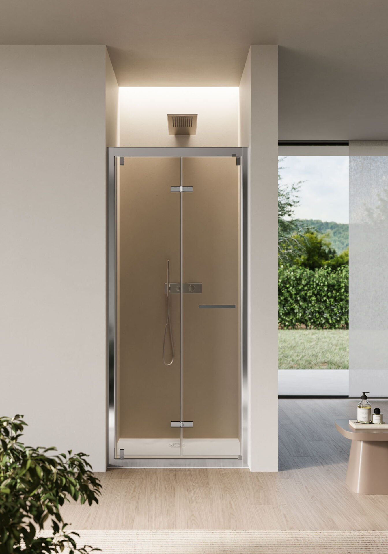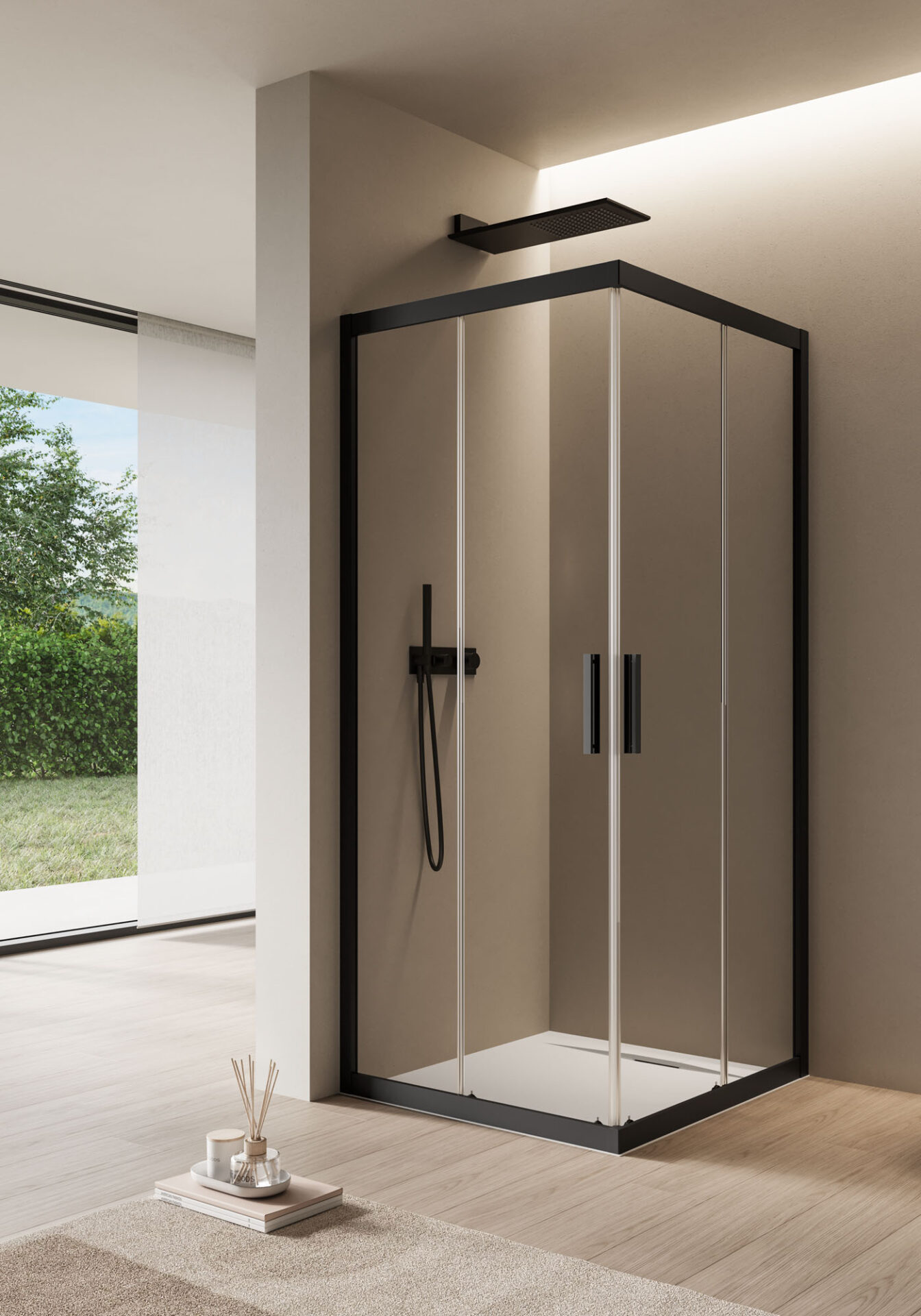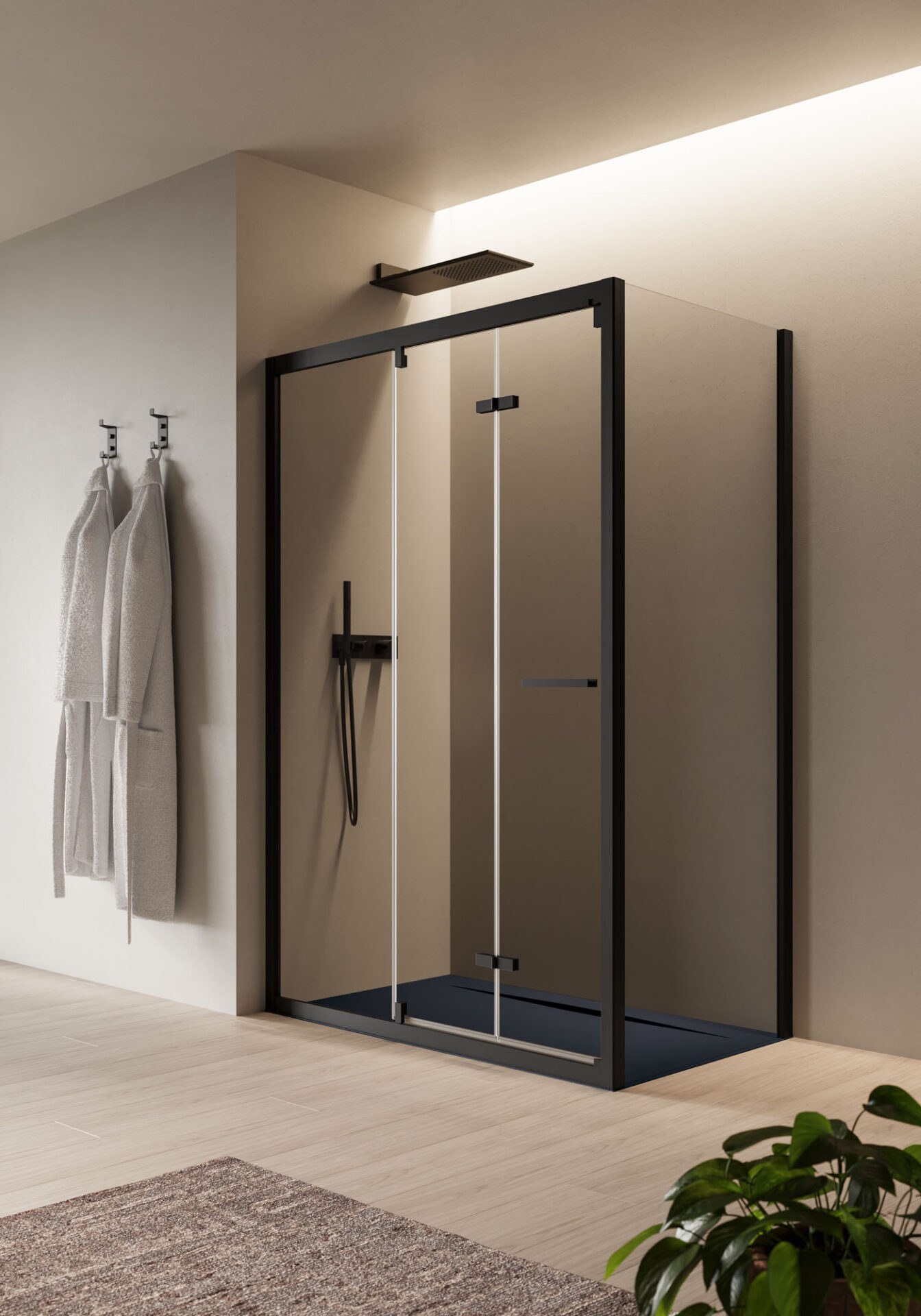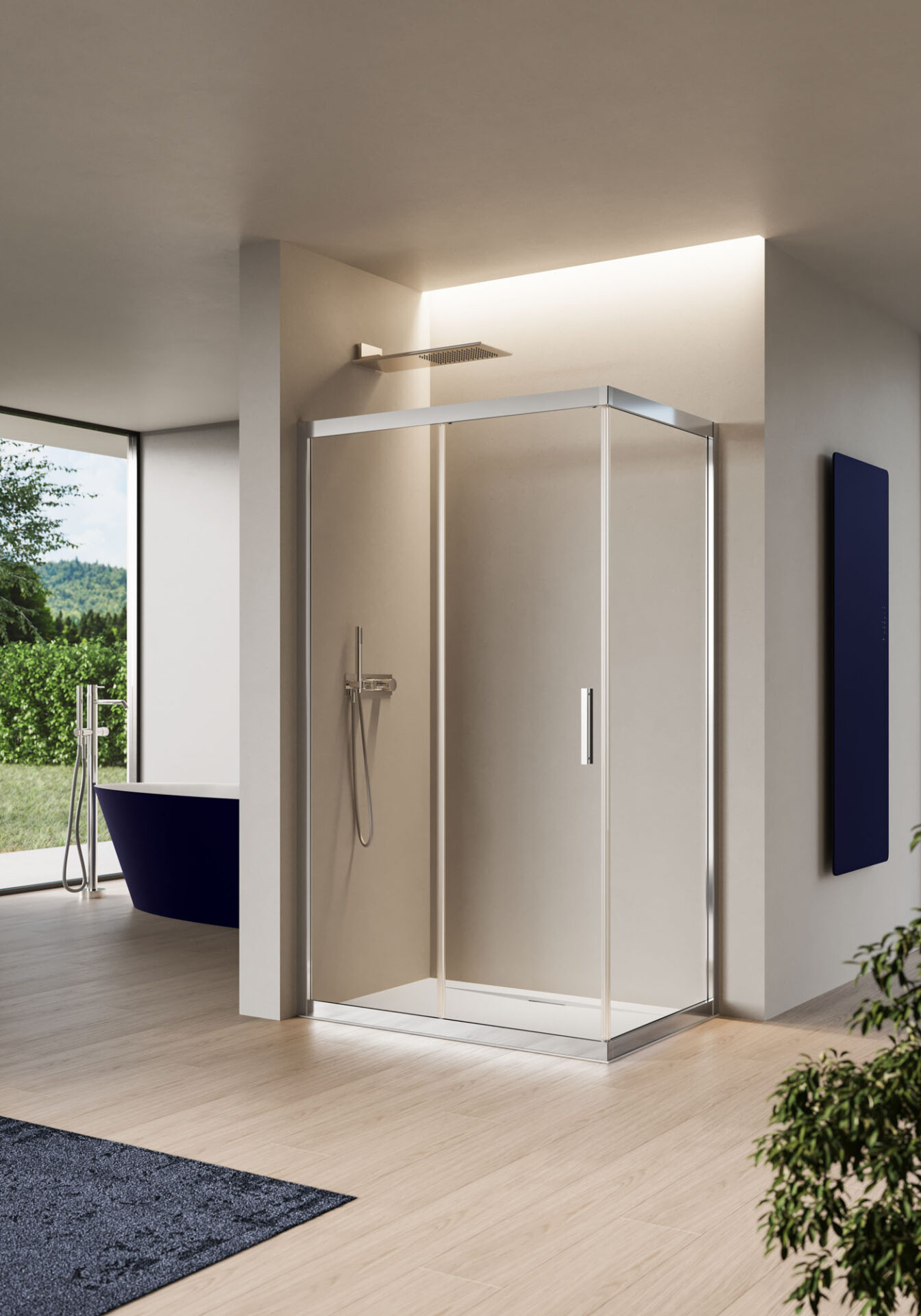 Funcionalidad aplicada a la cabina de ducha. La solución ducha con marco se convierte en protagonista gracias a una fuerte personalidad estética. Los mecanismos y detalles regalan nuevas siluetas geométricas y paralelismos irrenunciables. Origo significa también cabina de ducha curva.