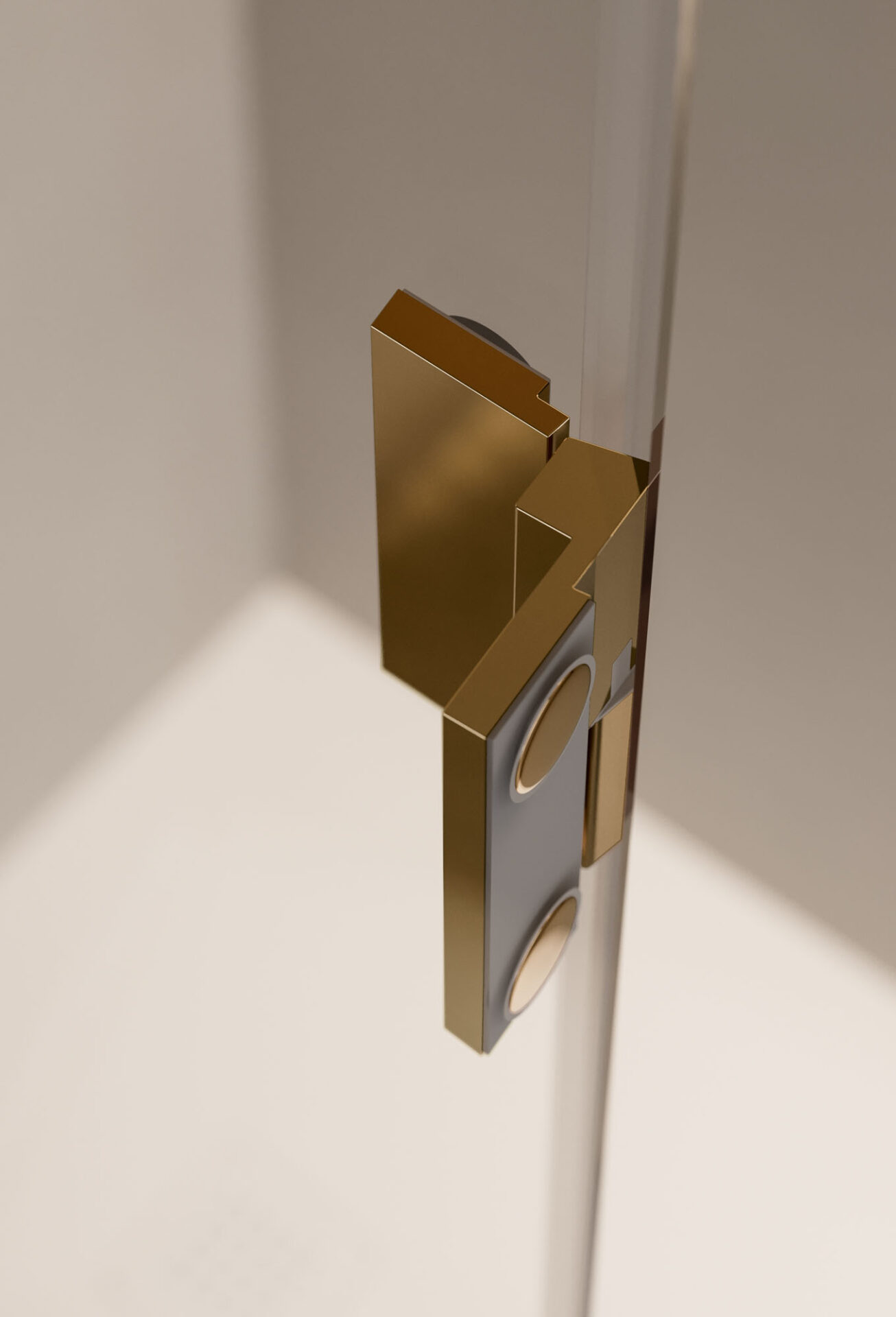 Bisagra con parte interna al ras del vidrio.