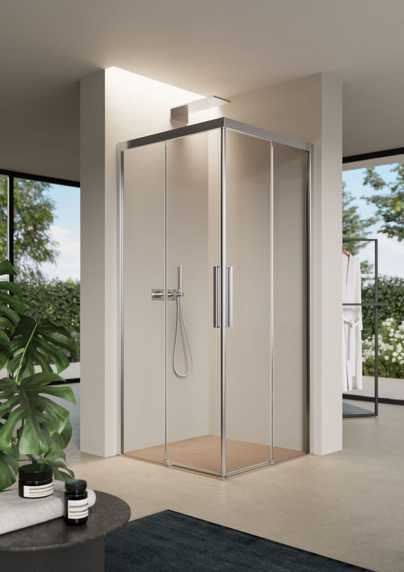Cabina de ducha con vidrio templado de 6 mm. Reconquistar la libertad de las propias acciones, vivir el bienestar de manera completamente natural y despreocupada. La colección de ducha Focus representa un nuevo impulso y nueva energía. Un programa completo con soluciones para la ducha con mampara frontal y cabina de ducha angular.