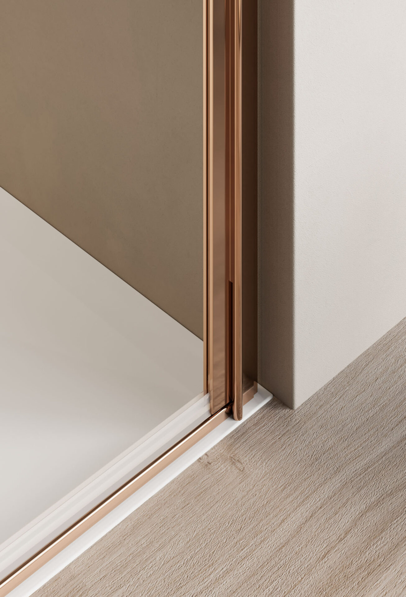 Bisagra integrada en el perfil. Disponible en alturas de hasta 240 cm (verificar viabilidad).