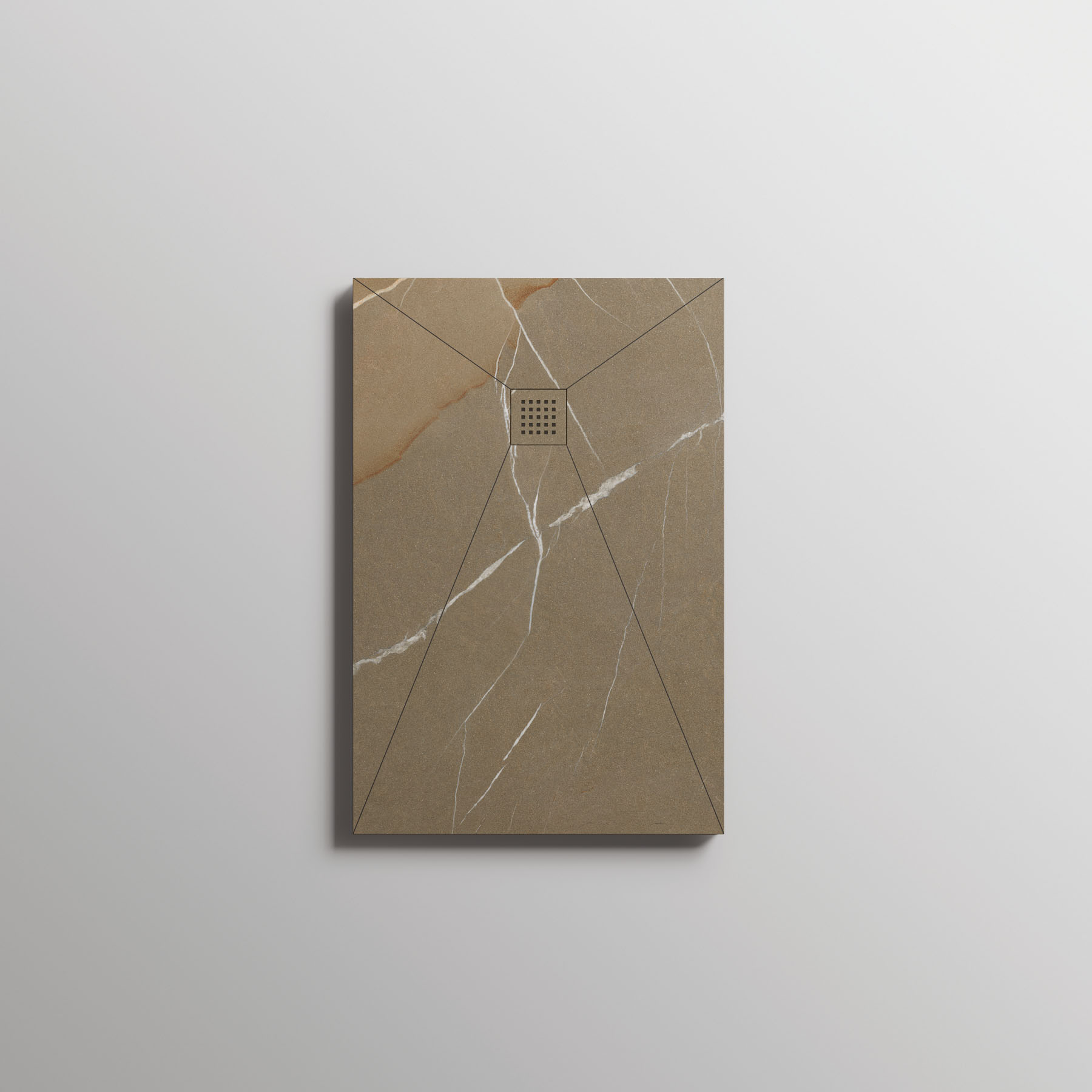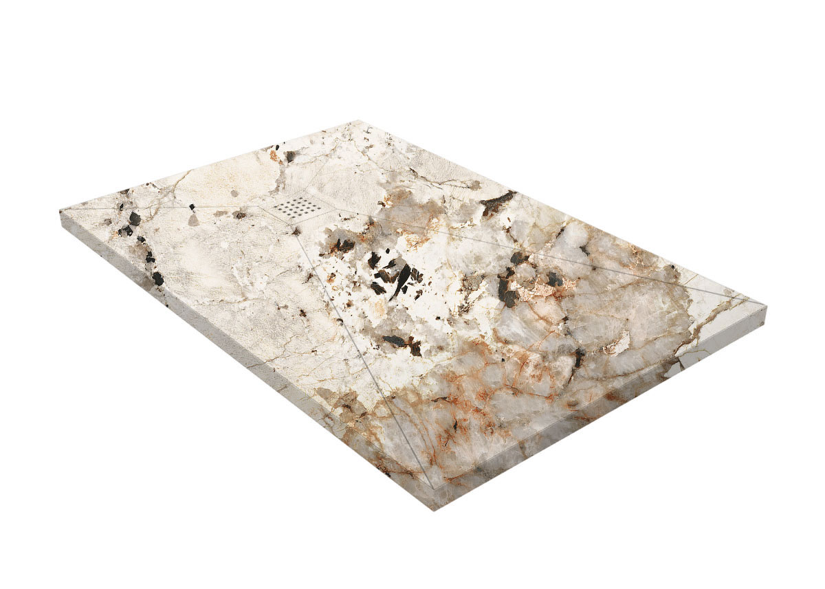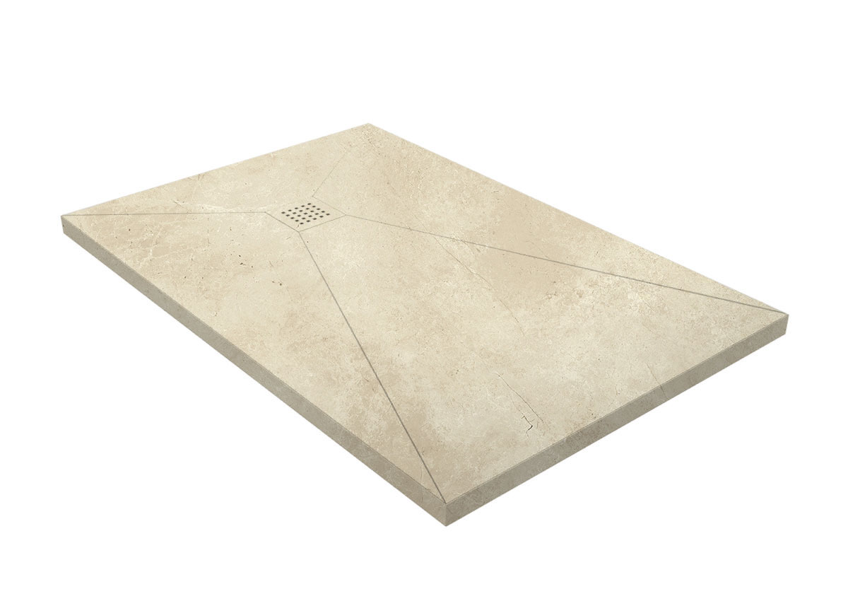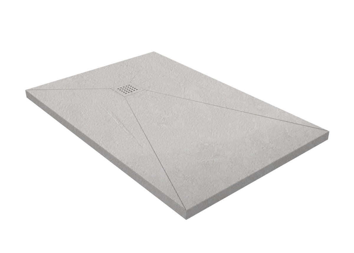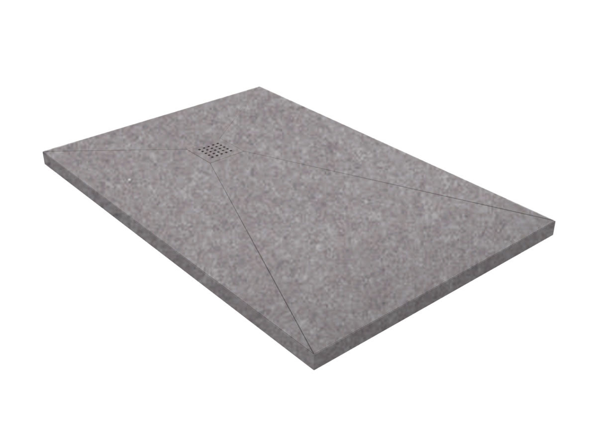 Plato de ducha de Gres de estética contemporánea que amplía las posibilidades de coordinación dentro del cuarto de baño: combinable con las encimeras con lavabo integrado Ideagroup y el radiador decorativo Helios.
