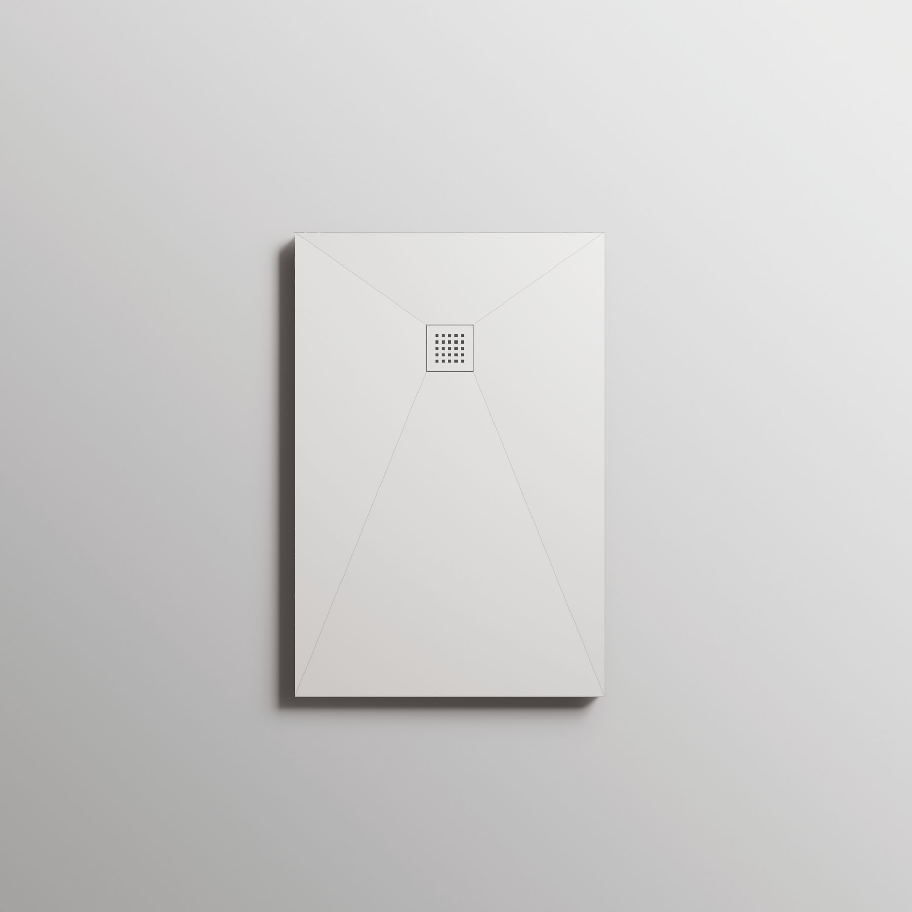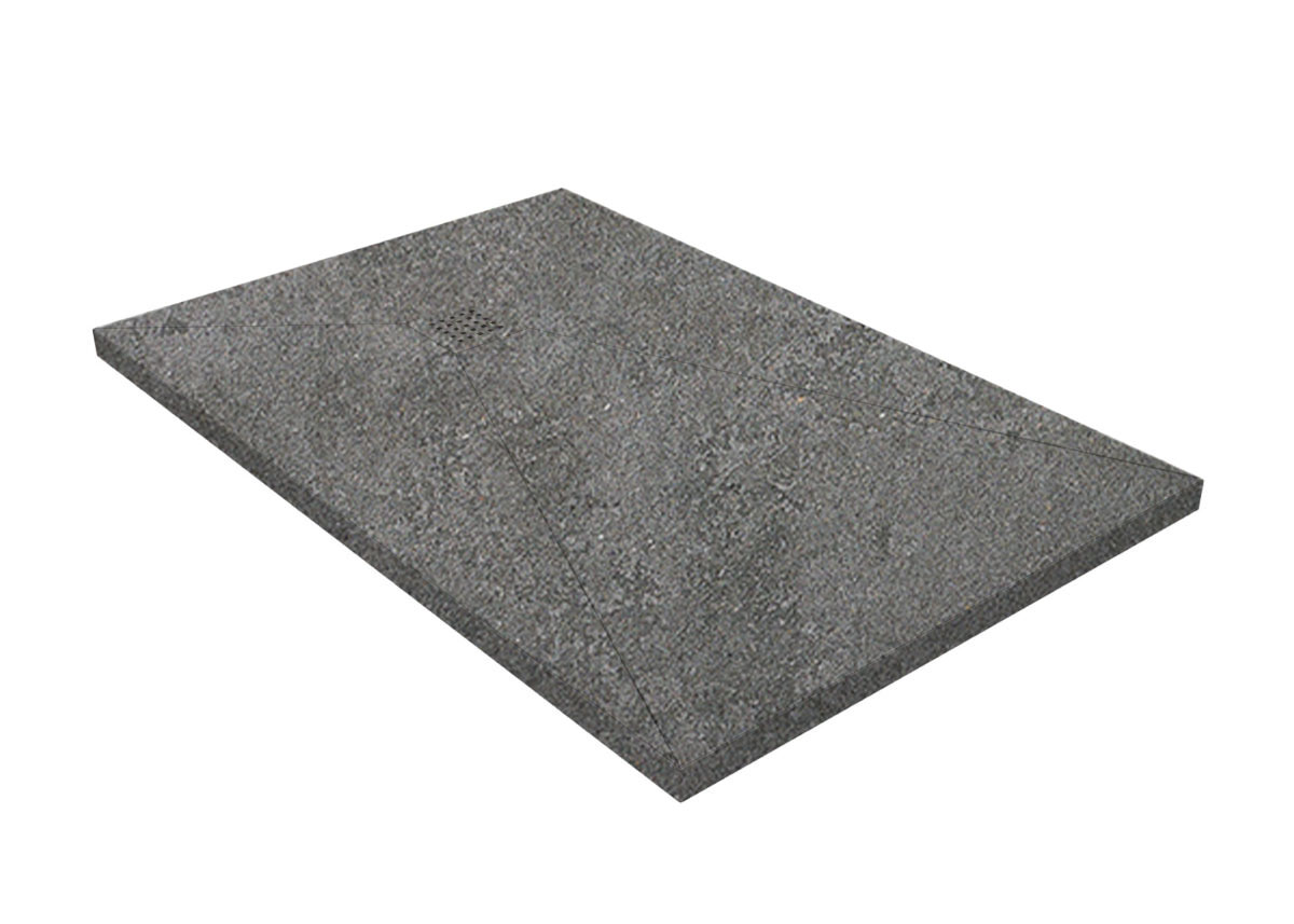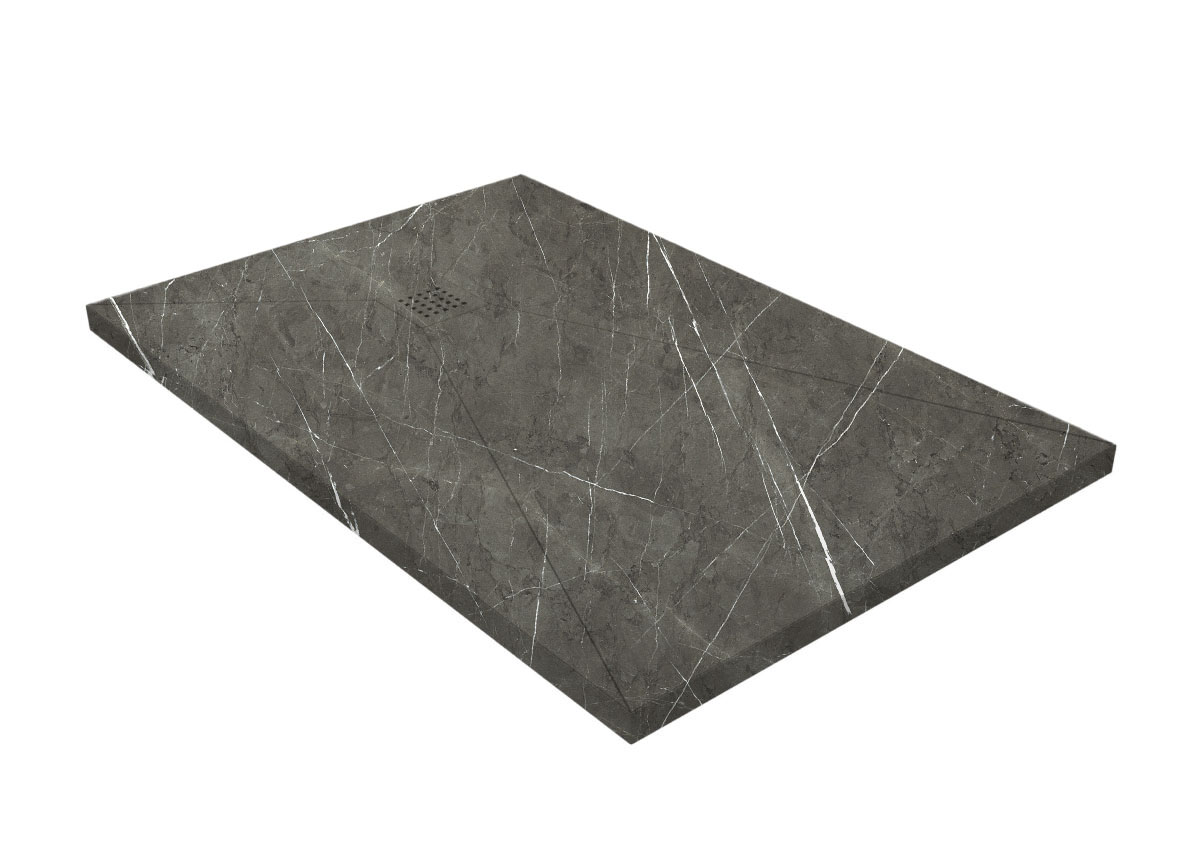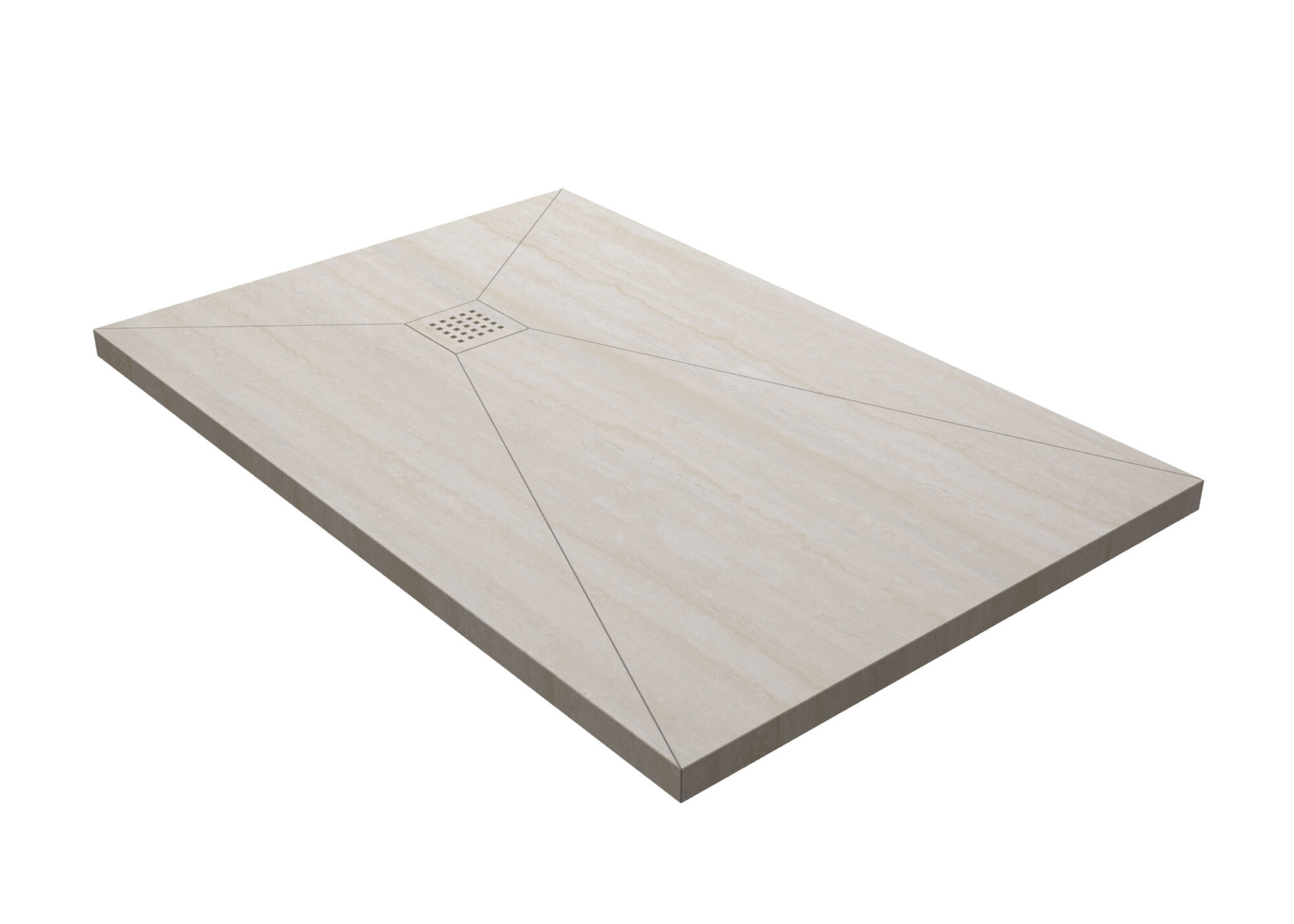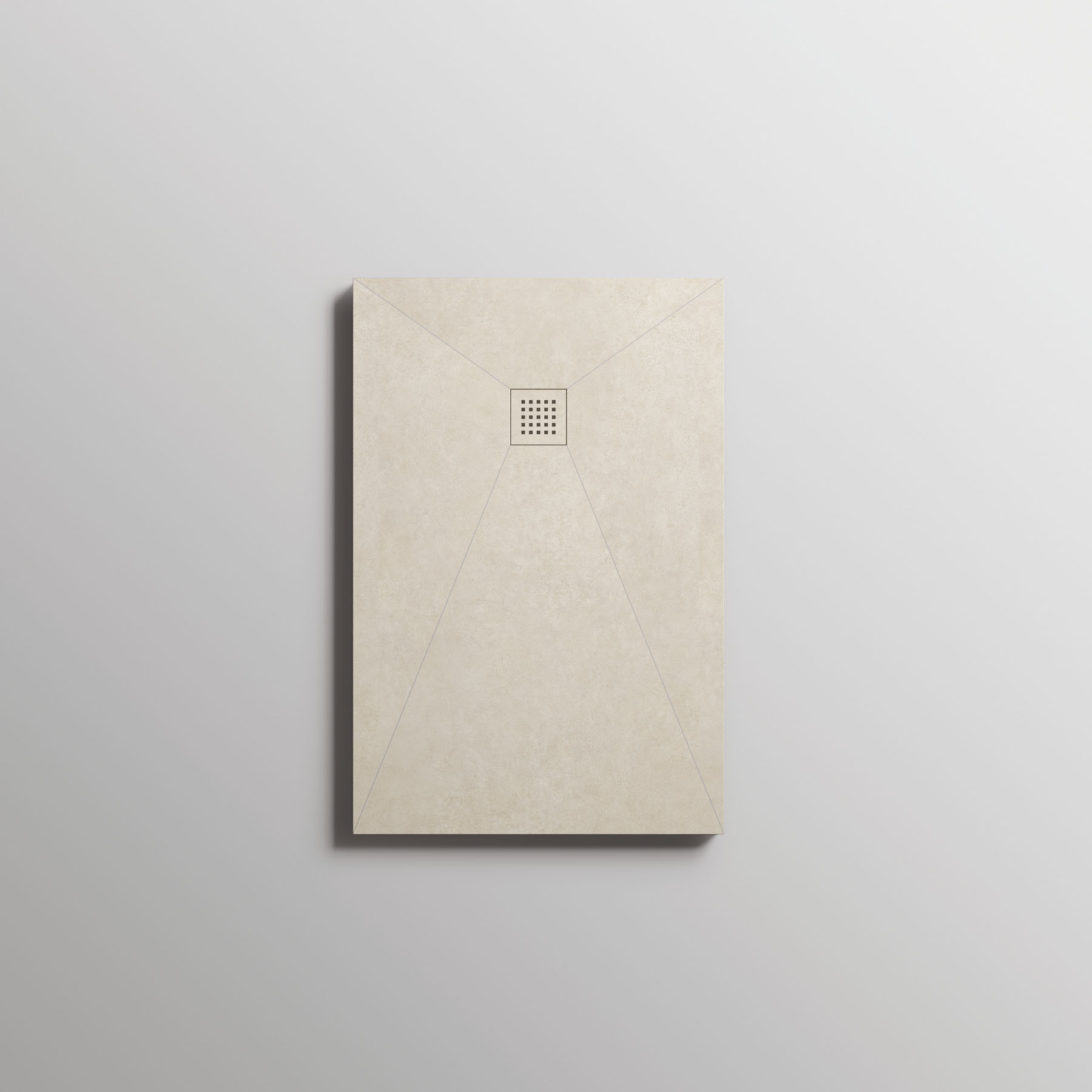 Plato de ducha de Gres de estética contemporánea que amplía las posibilidades de coordinación dentro del cuarto de baño: combinable con las encimeras con lavabo integrado Ideagroup y el radiador decorativo Helios.