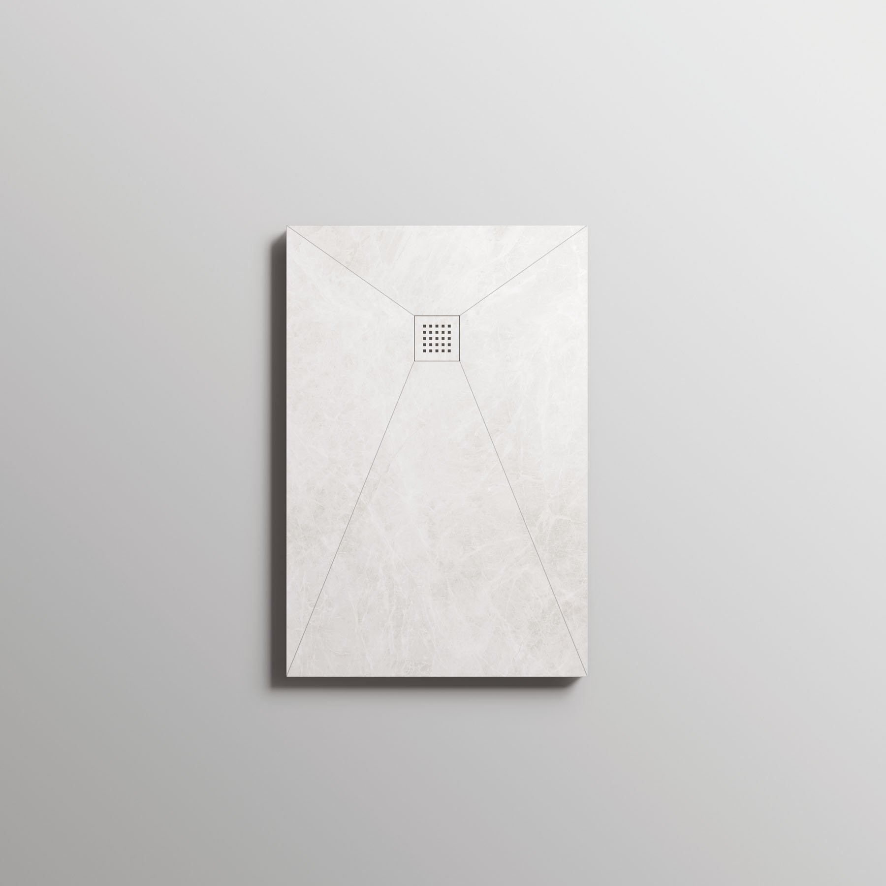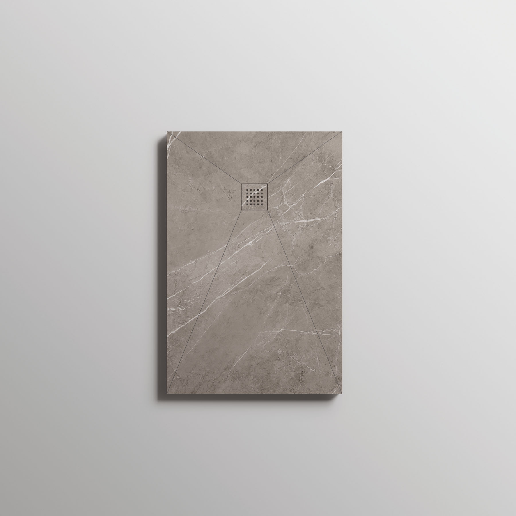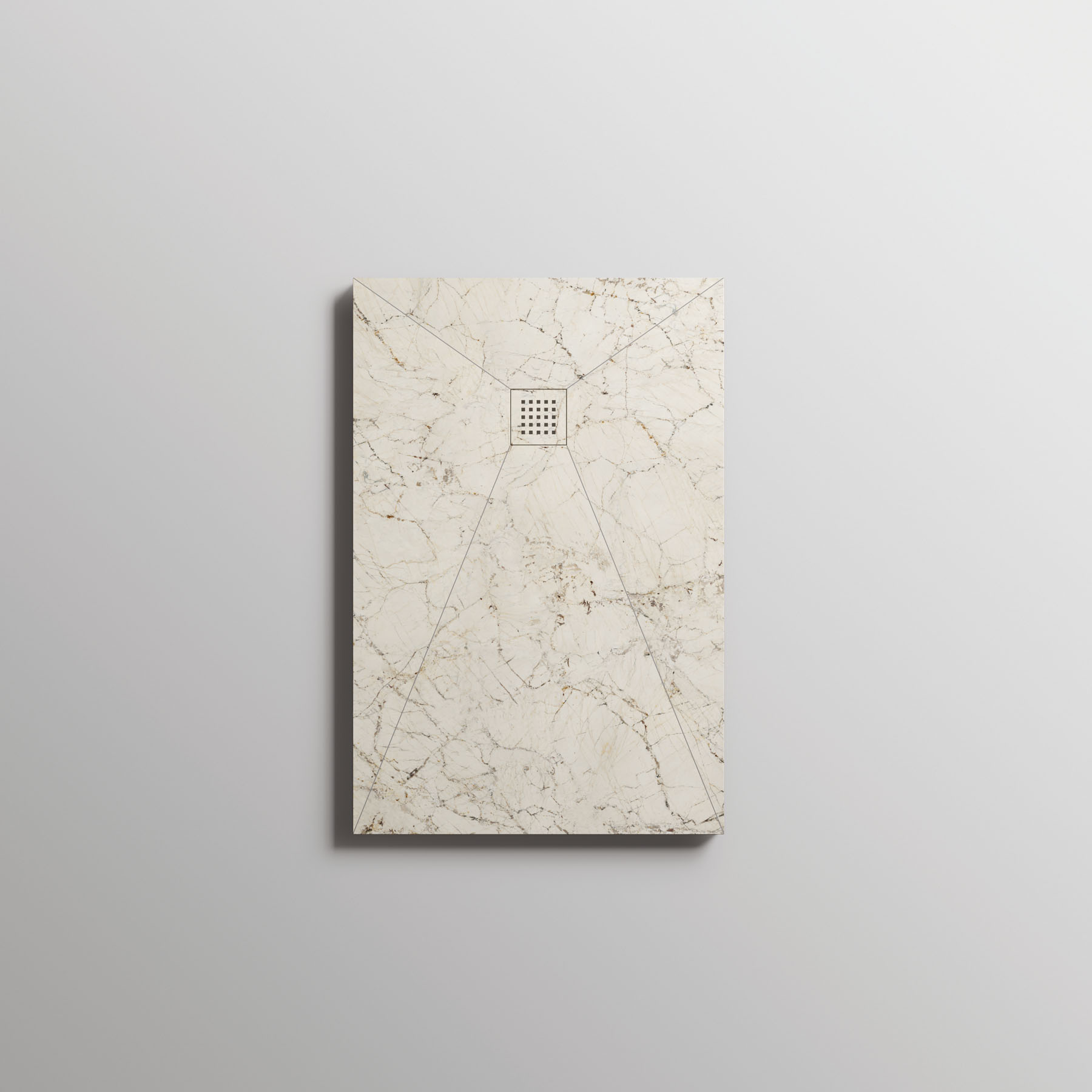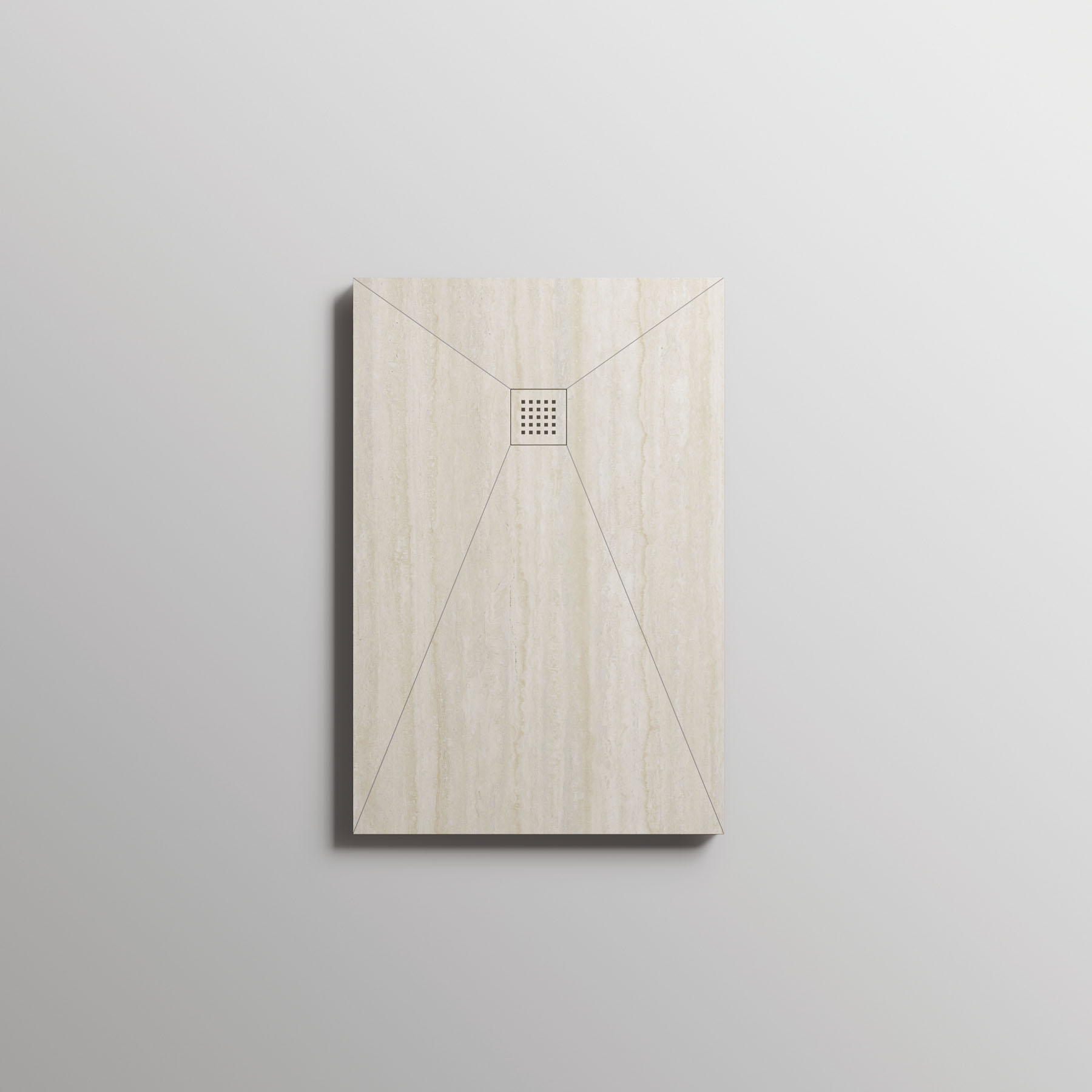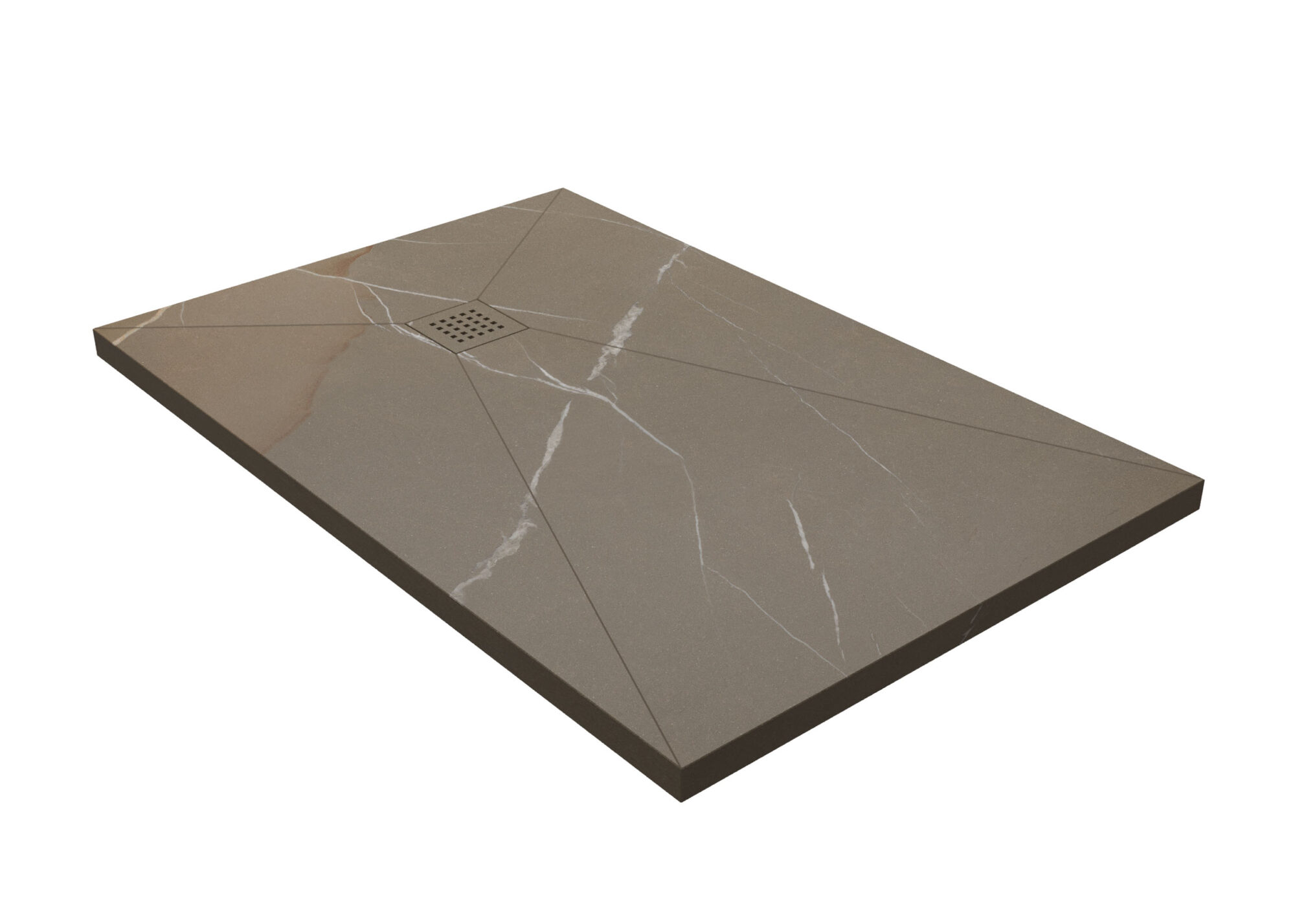 Plato de ducha de Gres de estética contemporánea que amplía las posibilidades de coordinación dentro del cuarto de baño: combinable con las encimeras con lavabo integrado Ideagroup y el radiador decorativo Helios.