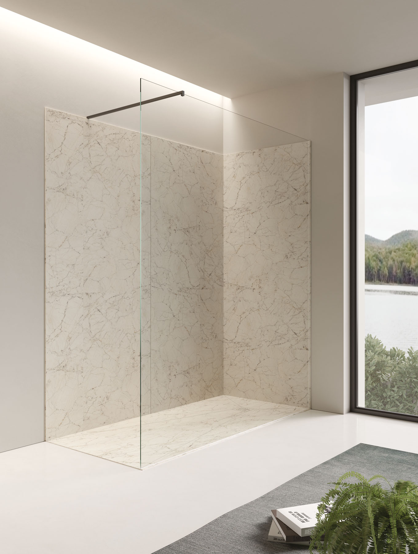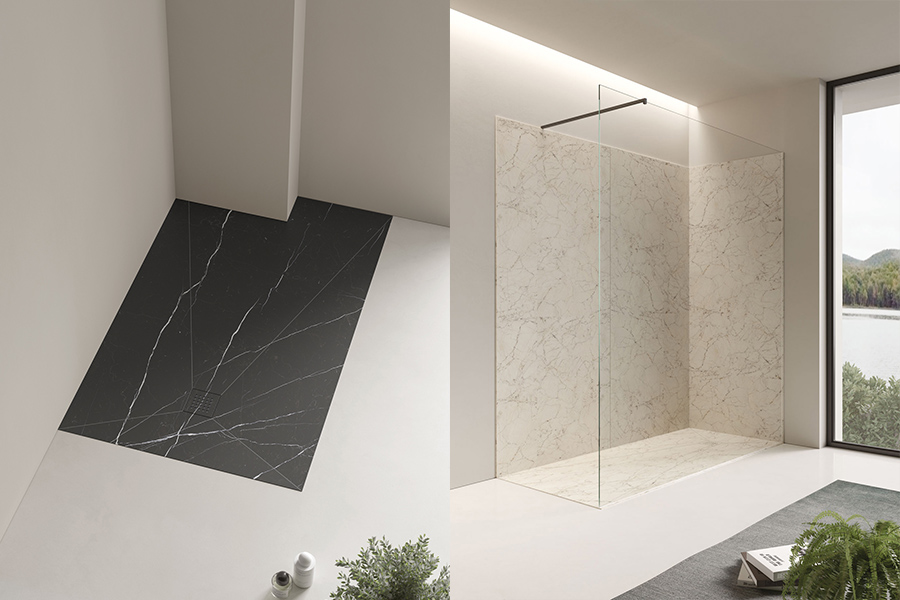 Eligiendo el plato de ducha Blade se pueden revestir paredes y duchas en obra para obtener un proyecto personalizado y coordinado.