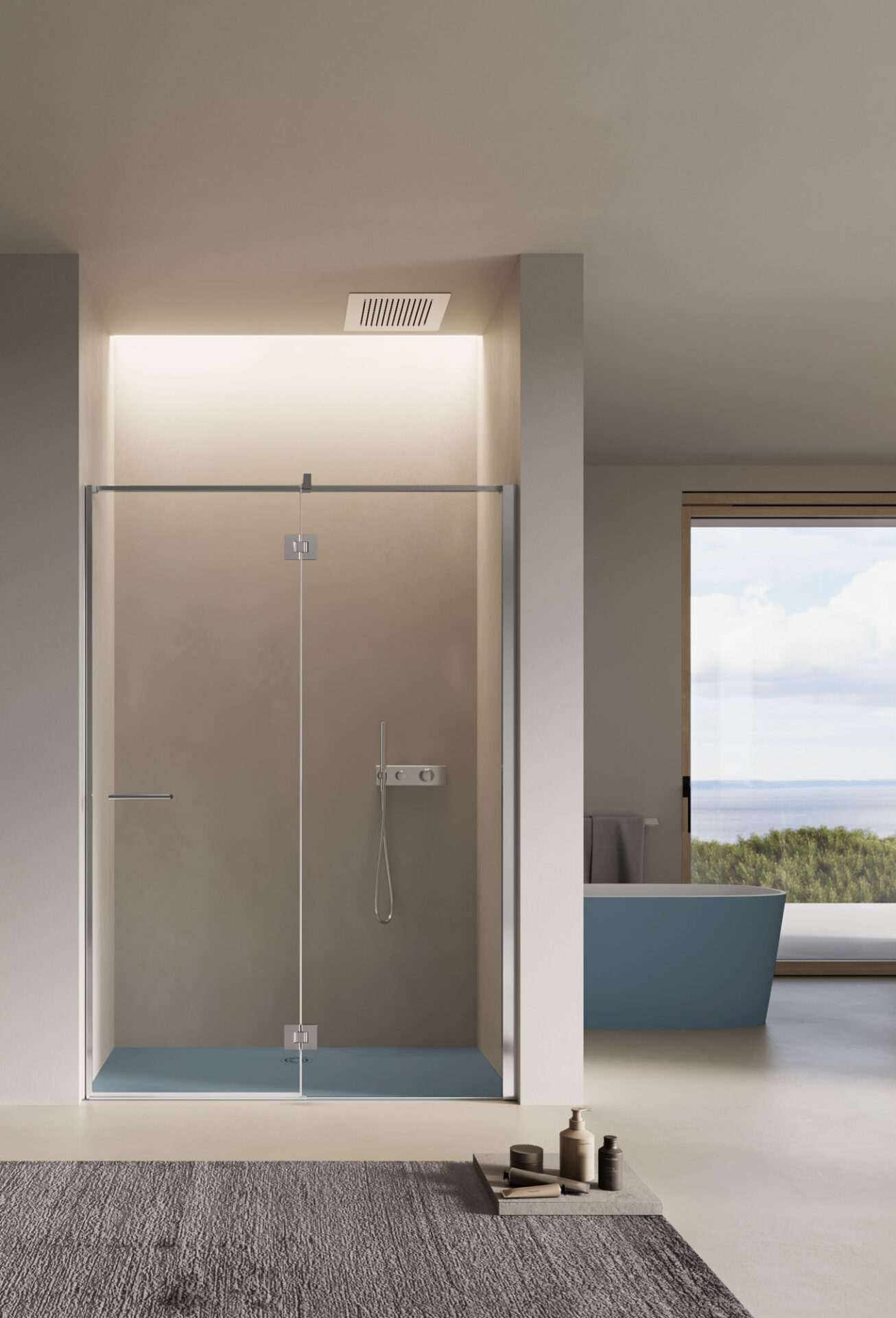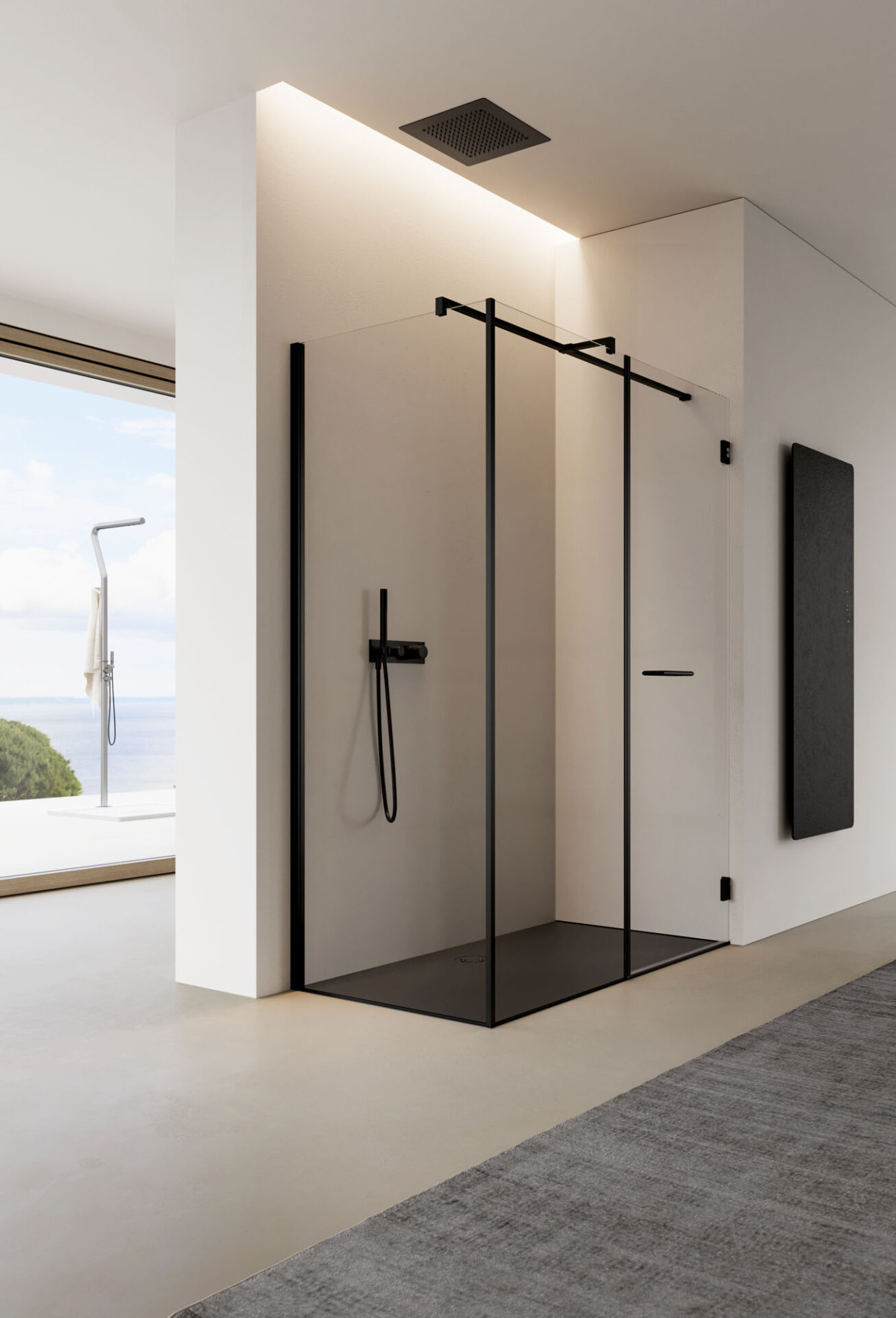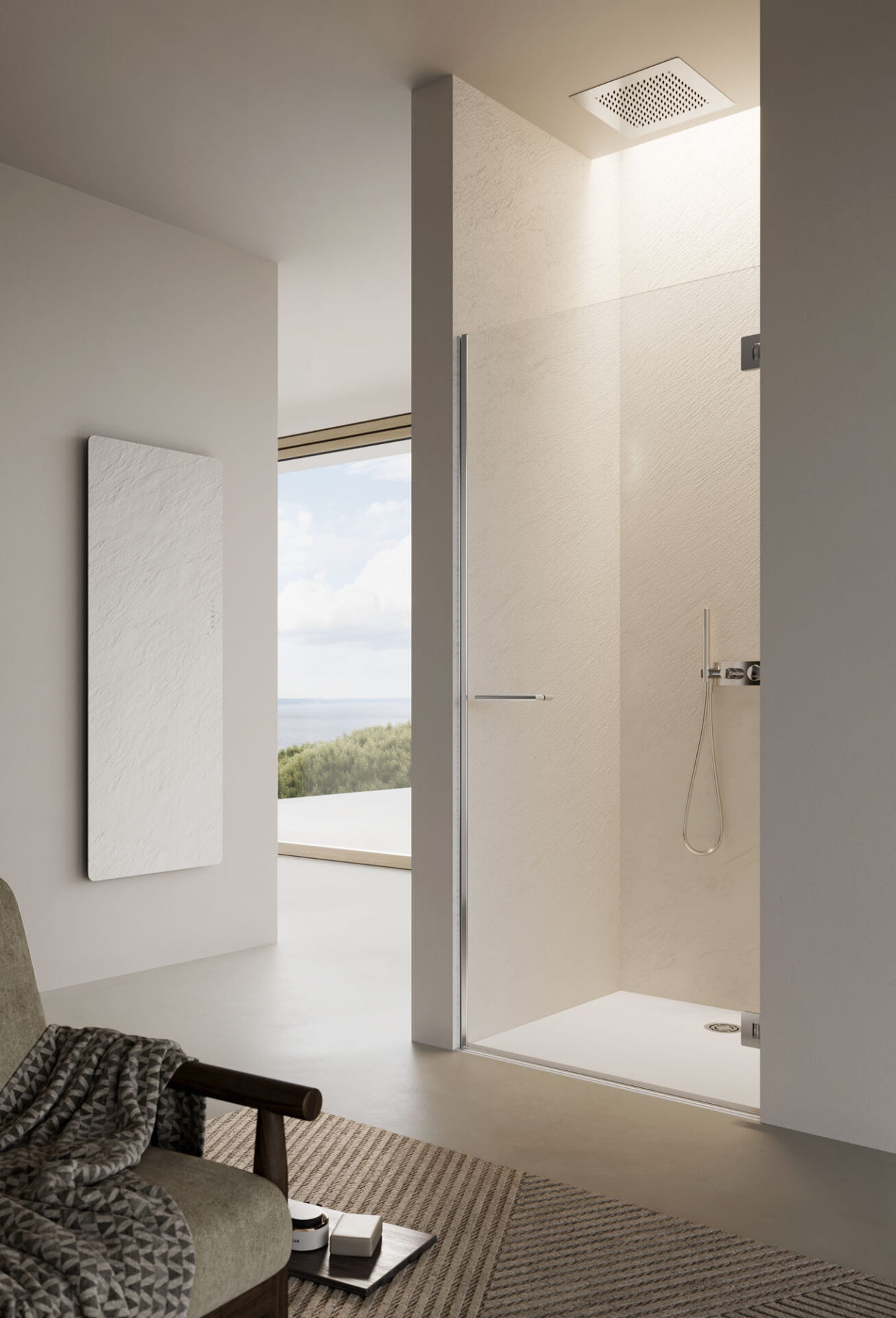 El diseño se manifiesta a través de la pureza estética y la funcionalidad. La cabina de ducha se traduce en bienestar cotidiano que se revela en el interiorismo del cuarto de baño. La cabina de ducha a medida para completar el espacio del baño.