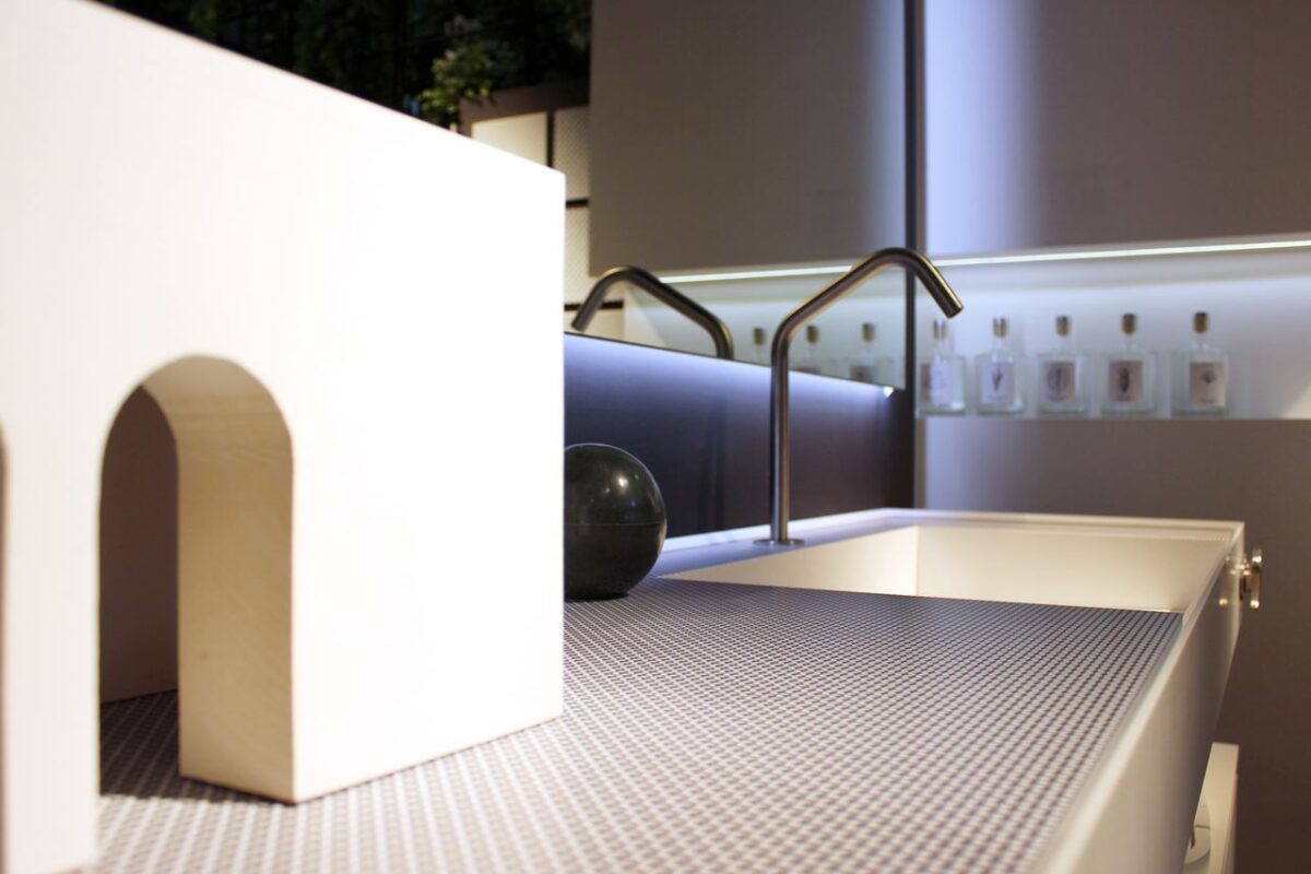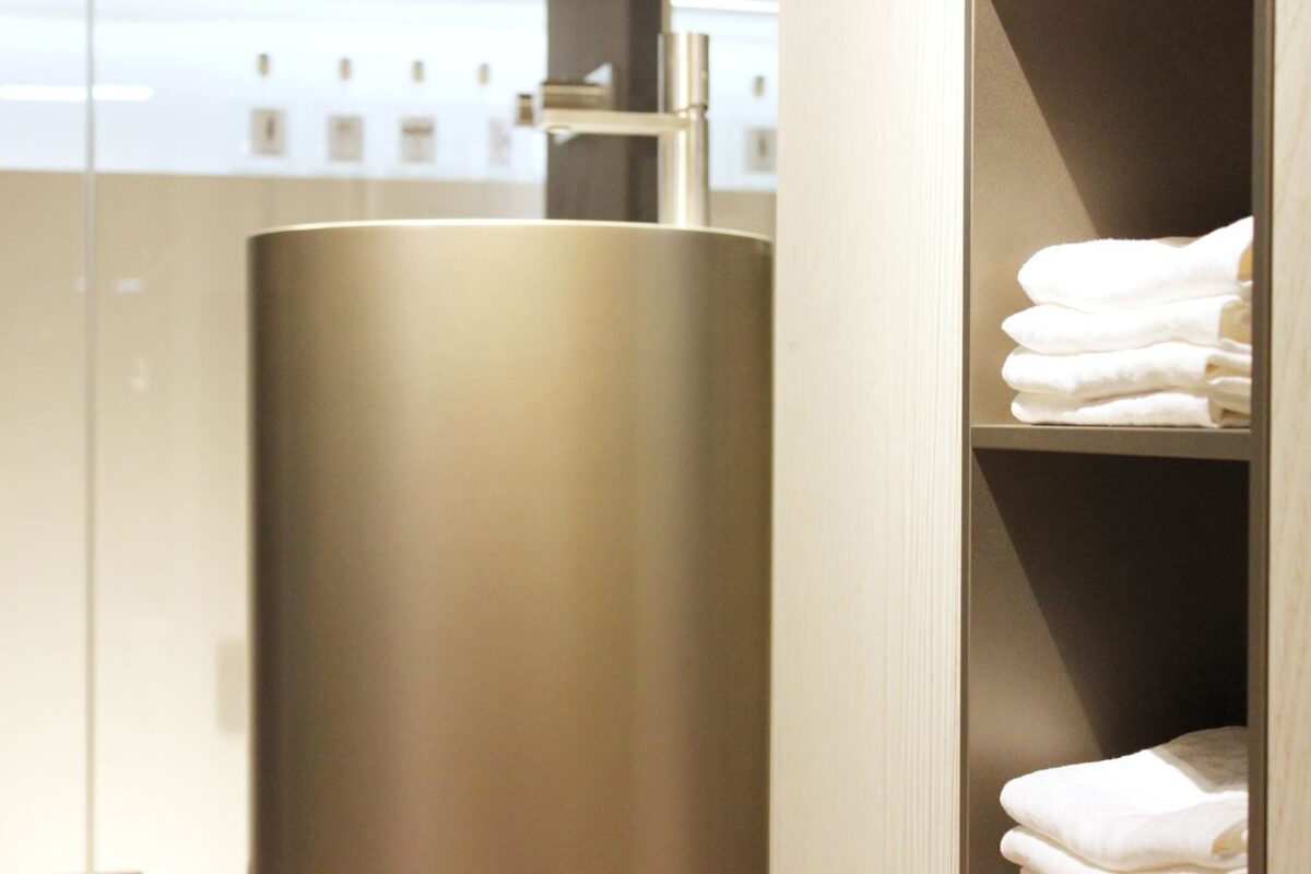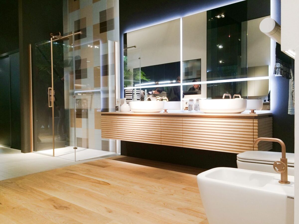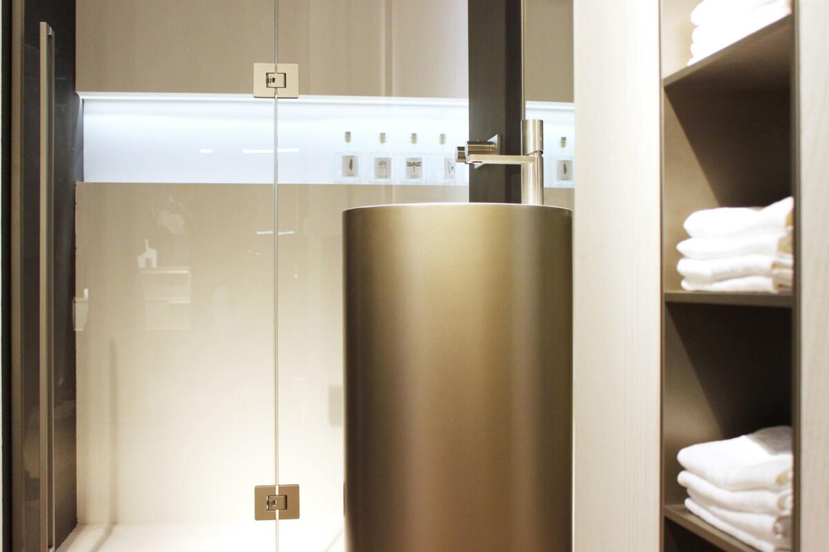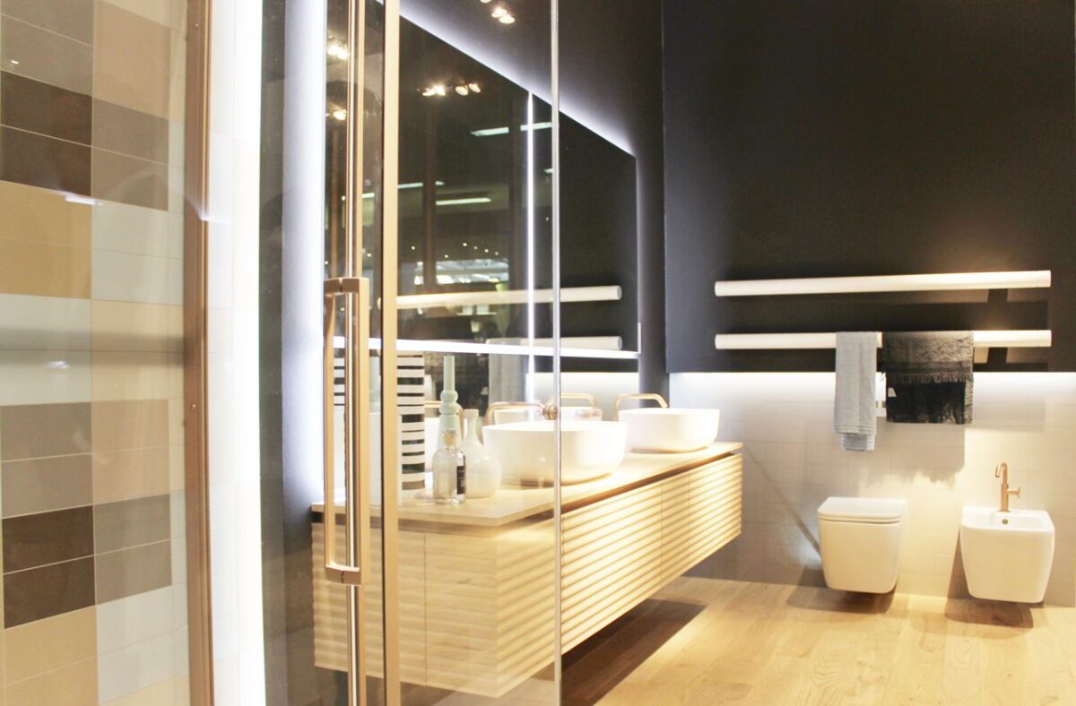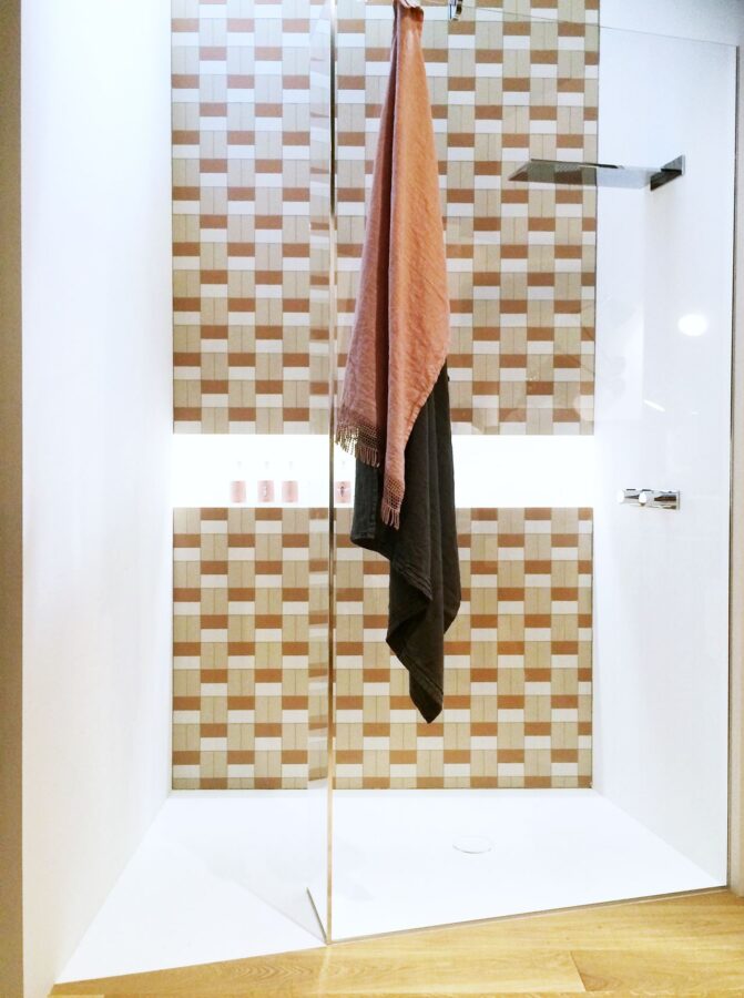 31/10/2018 #theEssenceOf Cersaie 2018: an editorial project – second appointment Second appointment with #theEssenceOf Cersaie 2018. During the fair we were lucky enough to host Simona Nurcato at our stand. She is an expert in interior design and bathroom furniture, and has a passion for reading, photography and travel. Read Simona Nurcato’s article in Beside Bathrooms below. Choosing a shower that matches the bathroom décor: five tips If you are buying a shower enclosure, it’s good to know that it’s now possible to choose it with a style and colour that match the bathroom décor. A bespoke shower is no longer (just) a shower with customised dimensions and height, as customisation options now also include the actual style and design of the shower, which can be adapted to the existing bathroom décor. What does this mean in practice? Which elements of a shower enclosure are customisable? What kind of creative freedom do the current shower enclosure collections offer, and how many colour and style options do they come in? I’m happy to tell you something about that, after seeing disenia’s products on display at the cersaie 2018 fair. But, before that, let me make a couple of introductory remarks. Sometimes I consider how much the shower area has changed over the past years. Just think of when I started working in this market segment. It was back in 2004, and shower enclosures were indeed quite simple. Basic, I would say. Shower trays only came in a few, standard sizes, and were made of ceramic, or in a cheaper acrylic material. They had very high edges, some as high as 15 cm (which would be unthinkable today!). Mostly built around an aluminium frame, shower enclosures were available varnished white or with a chrome or satin finish, and were usually around 1900 mm high. The glass panels were either clear, frosted (with only two options to choose from), or with a textured finish at best. Indeed, I’ve simplified a little bit, but things were not that much different at that time. And by the way, that time also indicates when i started out in the bathroom market, quite a long time ago! But let’s just ignore that. No more than 15 years later: a small revolution is happening. Shower trays now tend to have lower edges and in many cases are flush with the floor (or even built-in). Both the shower tray and shower walls are available in so many different materials, including tiles (other materials include Corian, large, thin stoneware tiles, engineered marble, resin and even waterproof wallpaper). Today’s shower enclosures have a much more streamlined design, have become taller and usually have very slim profiles and elegant, ultra-flat hinges. The shower frame is much slimmer and can be varnished and anodised to give the surface any type of metal finish that matches the bathroom furniture. The glass panels, thicker than in the past (at least 6 or 8 mm thick as against 3 or 4 mm thick), have become real decorative partitions, available in extra-clear or tinted glass, and can also have a mirror or coloured finish. From being an element usually chosen almost upon completion of a bathroom design project (and almost independently from the rest of the bathroom décor), the shower enclosure has become a stylish protagonist of the bathroom which is designed at the same time as the entire bathroom décor. As I was telling you before, I was lucky enough to pay a visit to Disenia’s stand at the Cersaie 2018 fair, where I picked up quite a few interesting ideas. Disenia, an Ideagroup company that produces aluminium shower enclosures, at the Bologna exhibition presented its high-end collection of shower enclosures conceived as integral, co-ordinated elements of a bathroom seen as a room for personal wellbeing. EXPLORE DISENIA’S COLLECTIONS To sum up: which elements of a shower enclosure can be chosen and customised? Height Dimensions Shower tray (material, colour, dimensions and even drain position) Shower walls (may or may not be in the same material as the bathroom floor and walls) Colour and finishes of profiles Colour and finishes of glass panels Structural components (handles, support brackets) Here are my five tips for integrating your shower enclosure in a bathroom design project, moving beyond the usual chromed frame and updating the shower to the latest trends. 1. MATCH THE SHOWER FRAME WITH THE TAPS AND FITTINGS This is a style detail that can totally change the way the bathroom is perceived. It is also possible with entry-level collections, like the Omega range that offers a lot of customisation possibilities: on display at the exhibition, the rose gold powder-lacquered profile matched the taps and fittings of the bathroom cabinet (Dolcevita by Aqua) and sanitaryware, creating an incredibly sophisticated total look. The Omega shower has 6 mm thick glass panels and slim profiles, and a squared handle both inside and out. The shower tray is Linea in Tecnogel: it is available in 6 delicate colours, has a 3.5 cm high edge and can be installed flush with the floor or as a built-in version. Because it can be cut to size it turns out to be particularly flexible when designing the bathroom. OMEGA | Shower enclosure with rose gold powder-lacquered profile – ph. BesideBathrooms @ Cersaie 2018 OMEGA | The taps and fittings of the vanity unit and sanitaryware have the same rose gold colour – ph. BesideBathrooms @ Cersaie 2018 OMEGA | The taps and fittings of the vanity unit and sanitaryware have the same rose gold colour – ph. BesideBathrooms @ Cersaie 2018 2. MATCH THE SHOWER ENCLOSURE PROFILES WITH THE LACQUERED FINISH OF THE WASHBASIN AND CABINETS With the Project shower enclosure by Disenia with almost invisible profiles and flat hinges, customisation options are unlimited. A brand new feature presented at Cersaie 2018, in addition to the standard colours (chrome, brushed stainless steel, matt white and black), profiles are now also available with the same lacquered finish as the c
